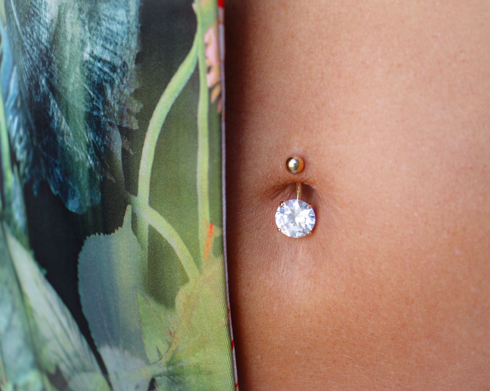 עגיל פירסינג בטבור – מעוטר וקריסטל עגול לבן