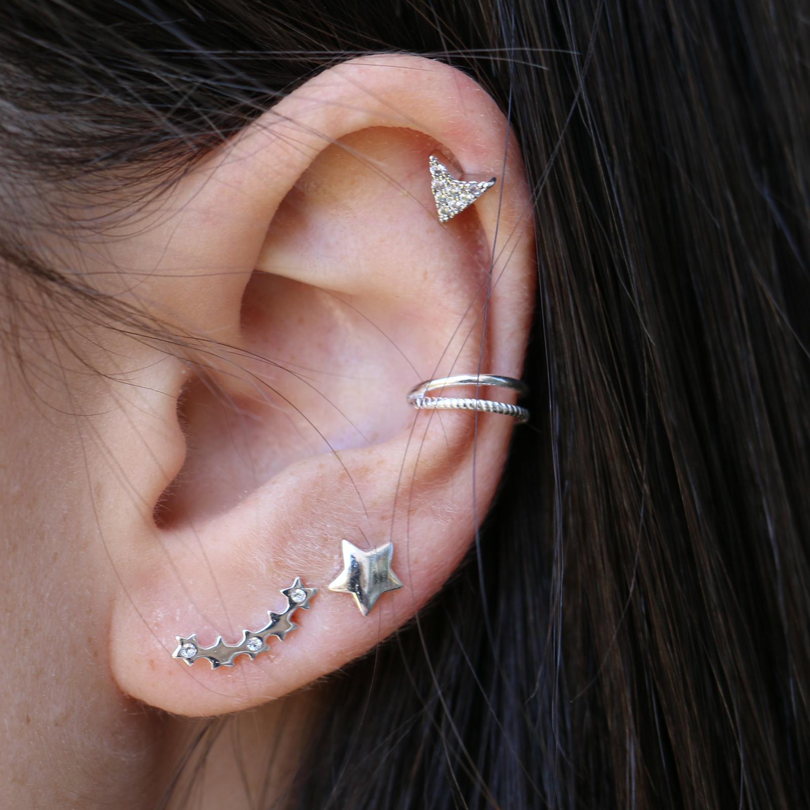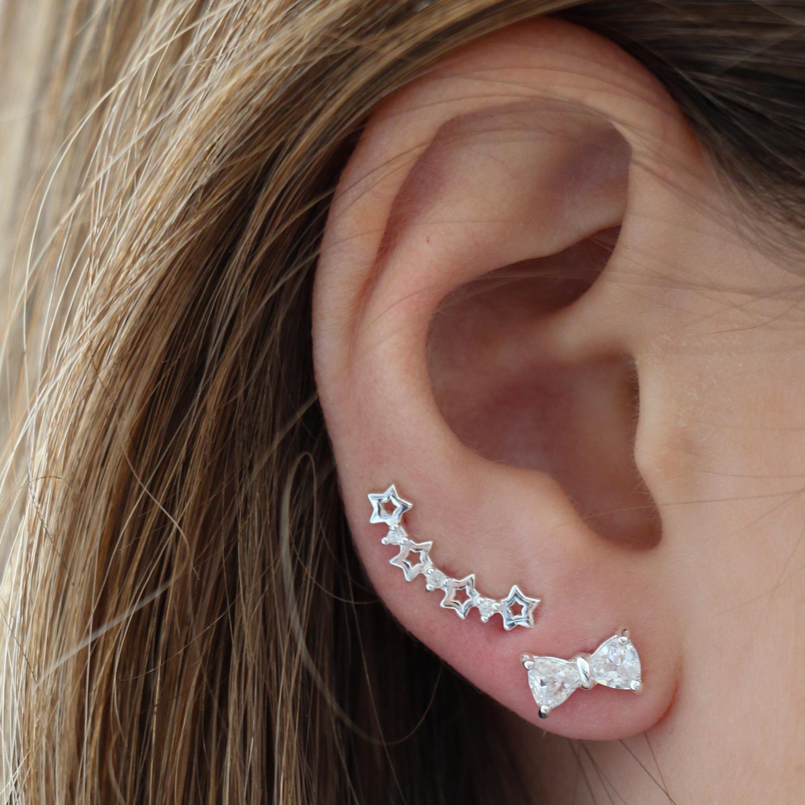 זוג עגילים מטפסים – כוכבים וקריסטלים לבנים