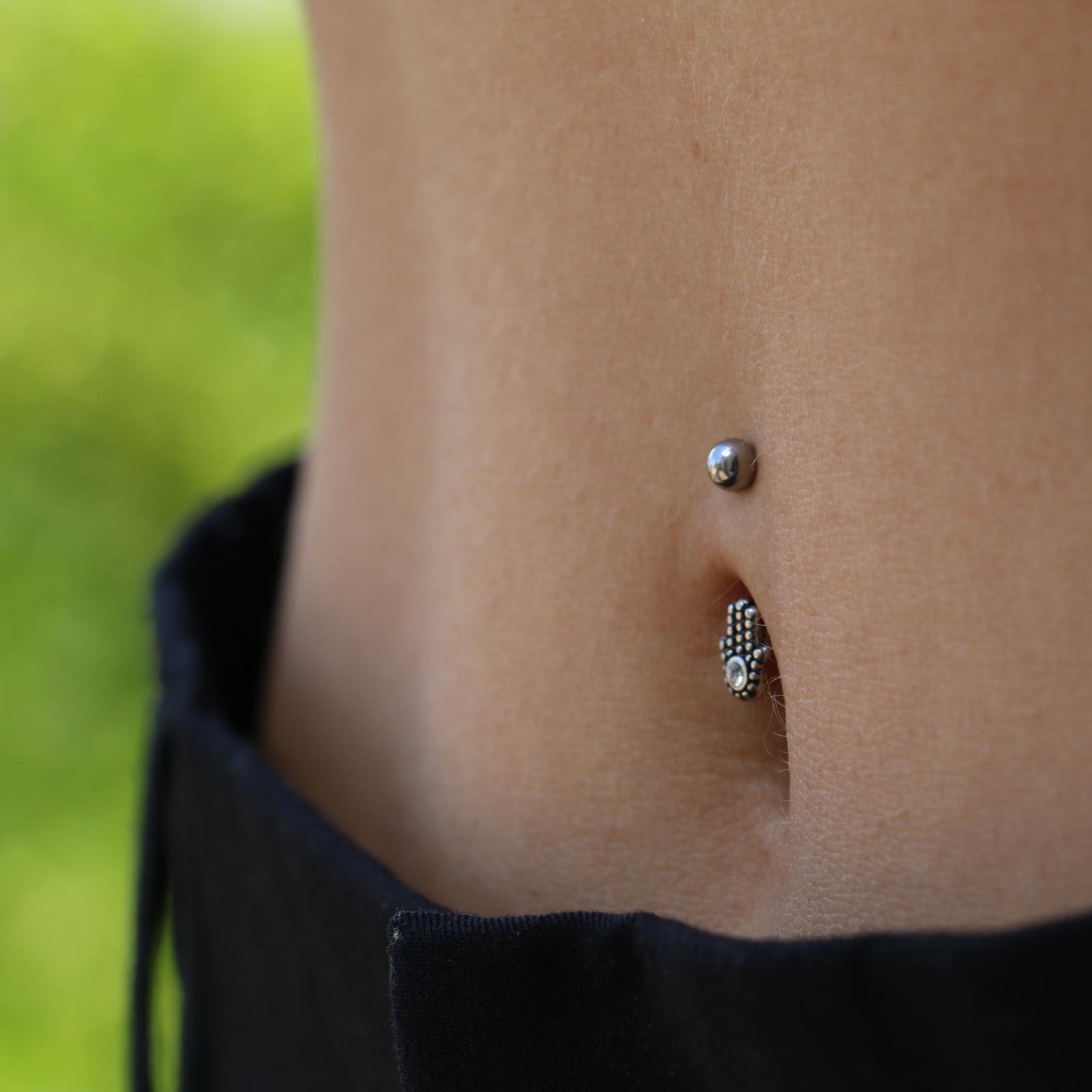 עגיל פירסינג בגבה / טבור – עיטור חמסה עם אופל לבן