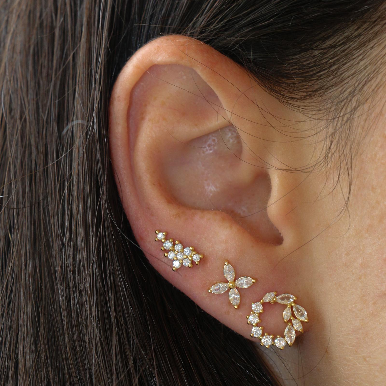 עגילים צמודים מכסף וציפוי זהב – קשת של מרקיזים לבנים
