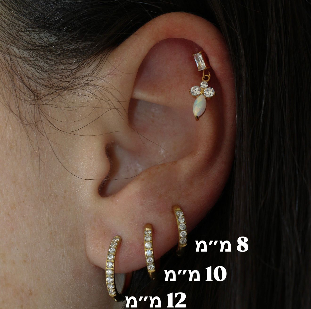 זוג עגילי חישוק האגיס 10 מ"מ מסרג'יקל סטיל פרח וקריסטלים לבנים