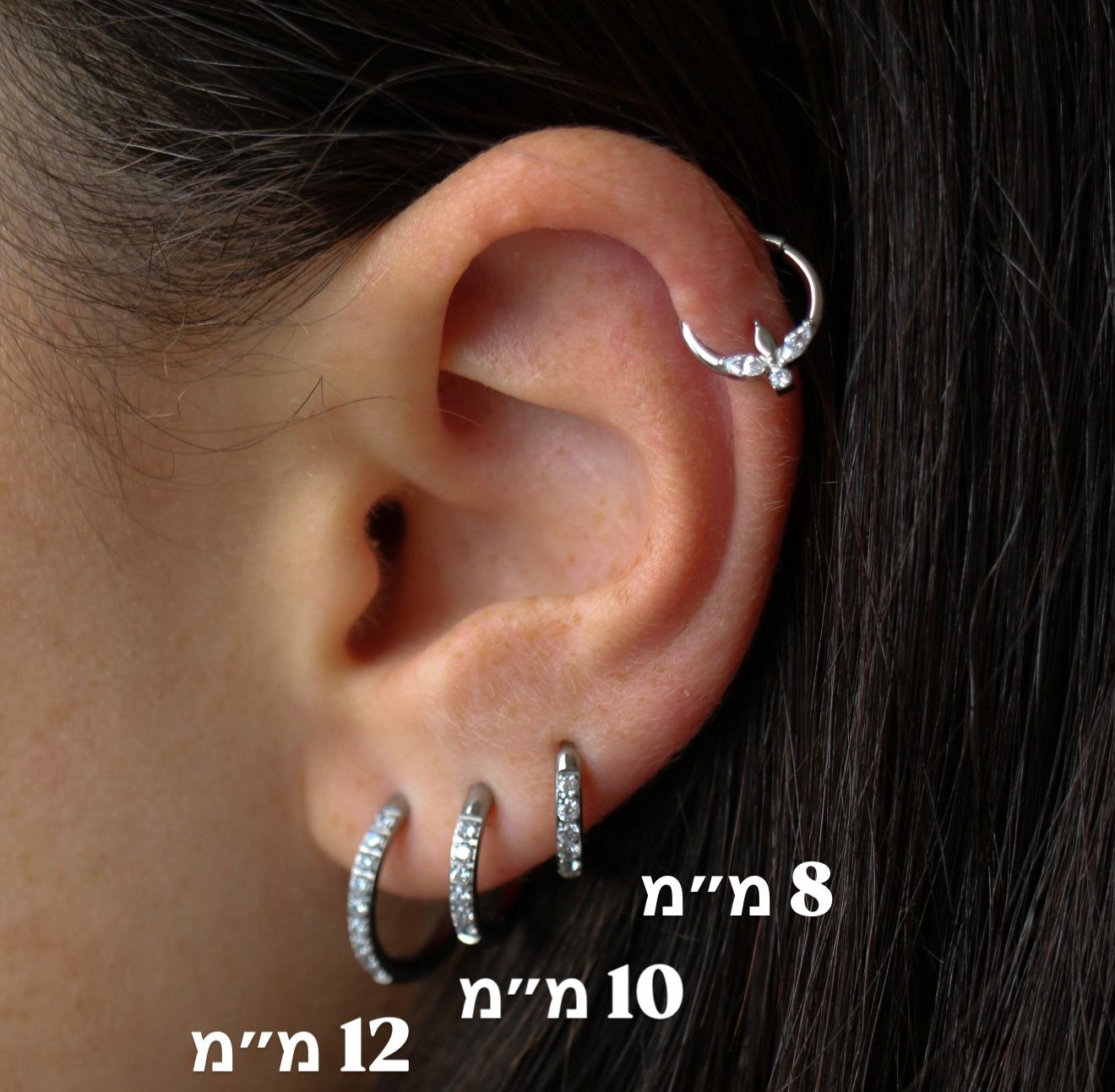 זוג עגילי חישוק האגיס מטיטניום 8 מ"מ עם קריסטלים לבנים