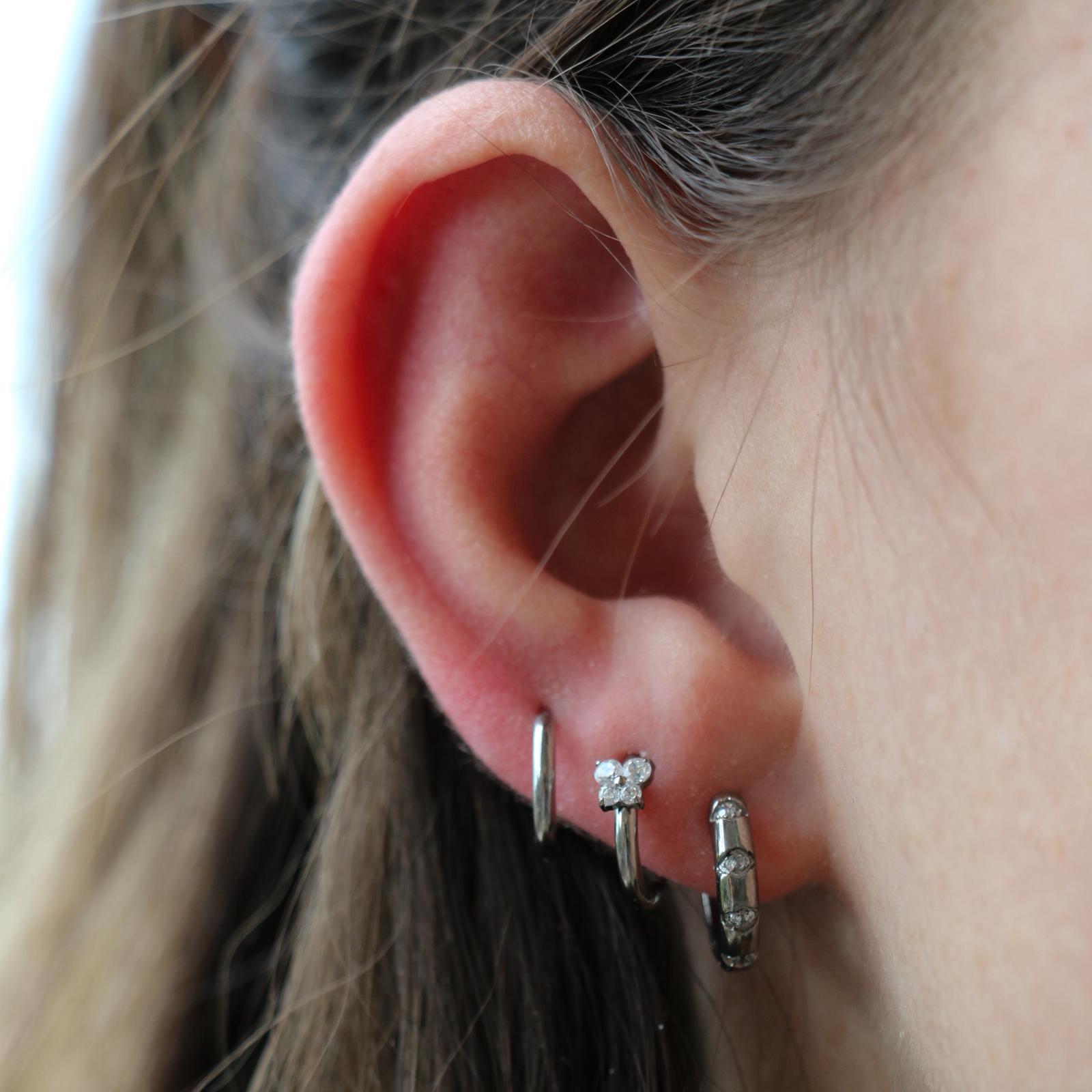 עגילי חישוק האגיס מכסף 2 שורות של קריסטלים לבנים