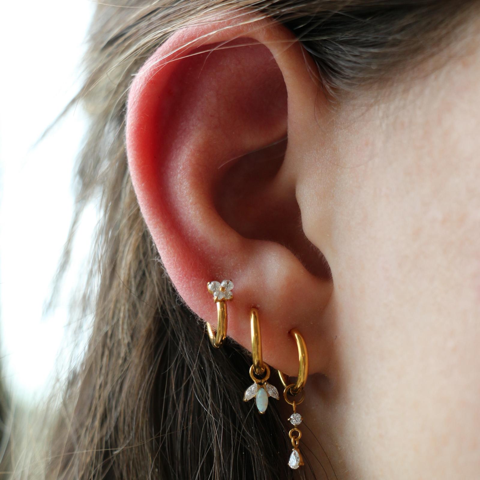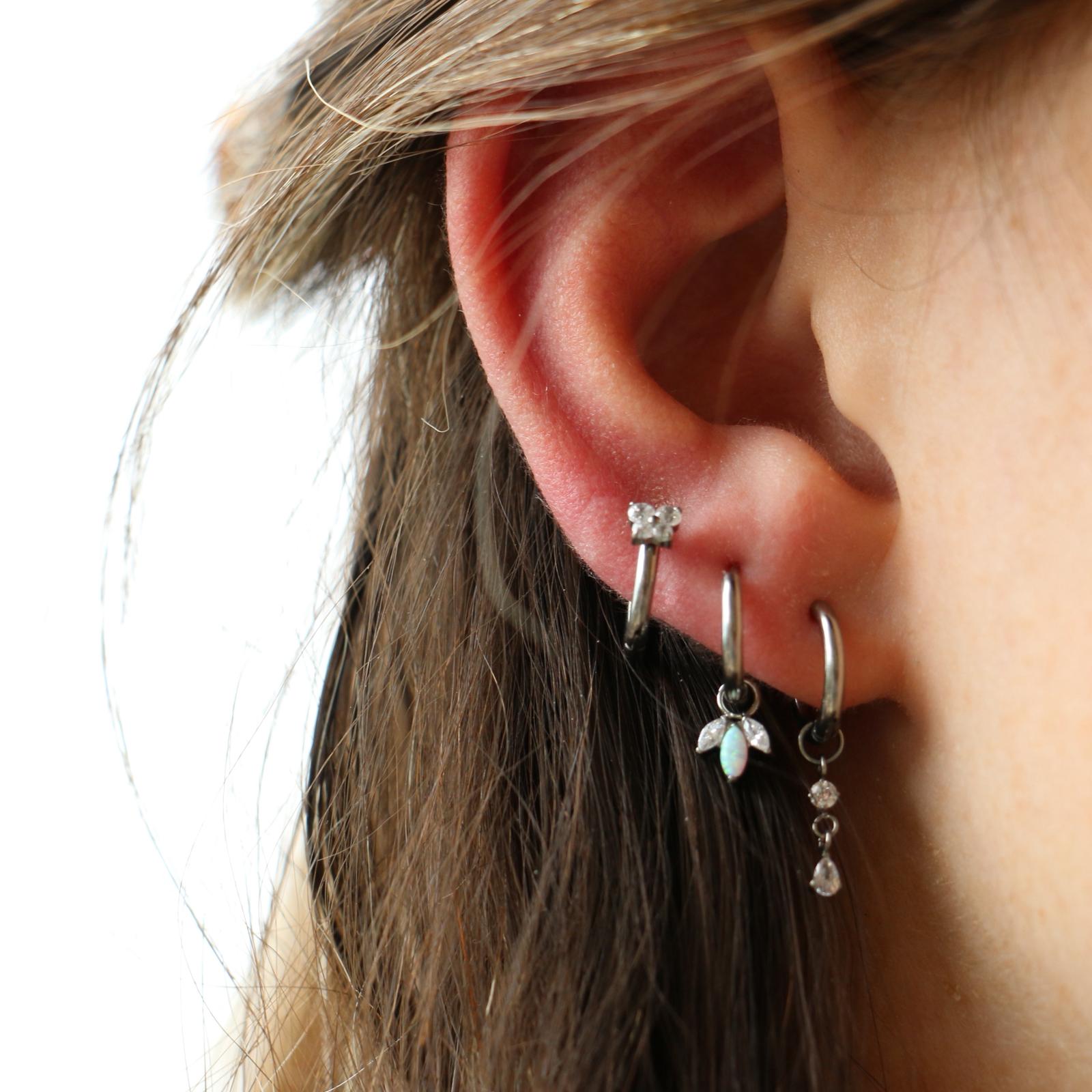 עגיל סטד בודד מטיטניום – גבעול ועלים קריסטלים לבנים