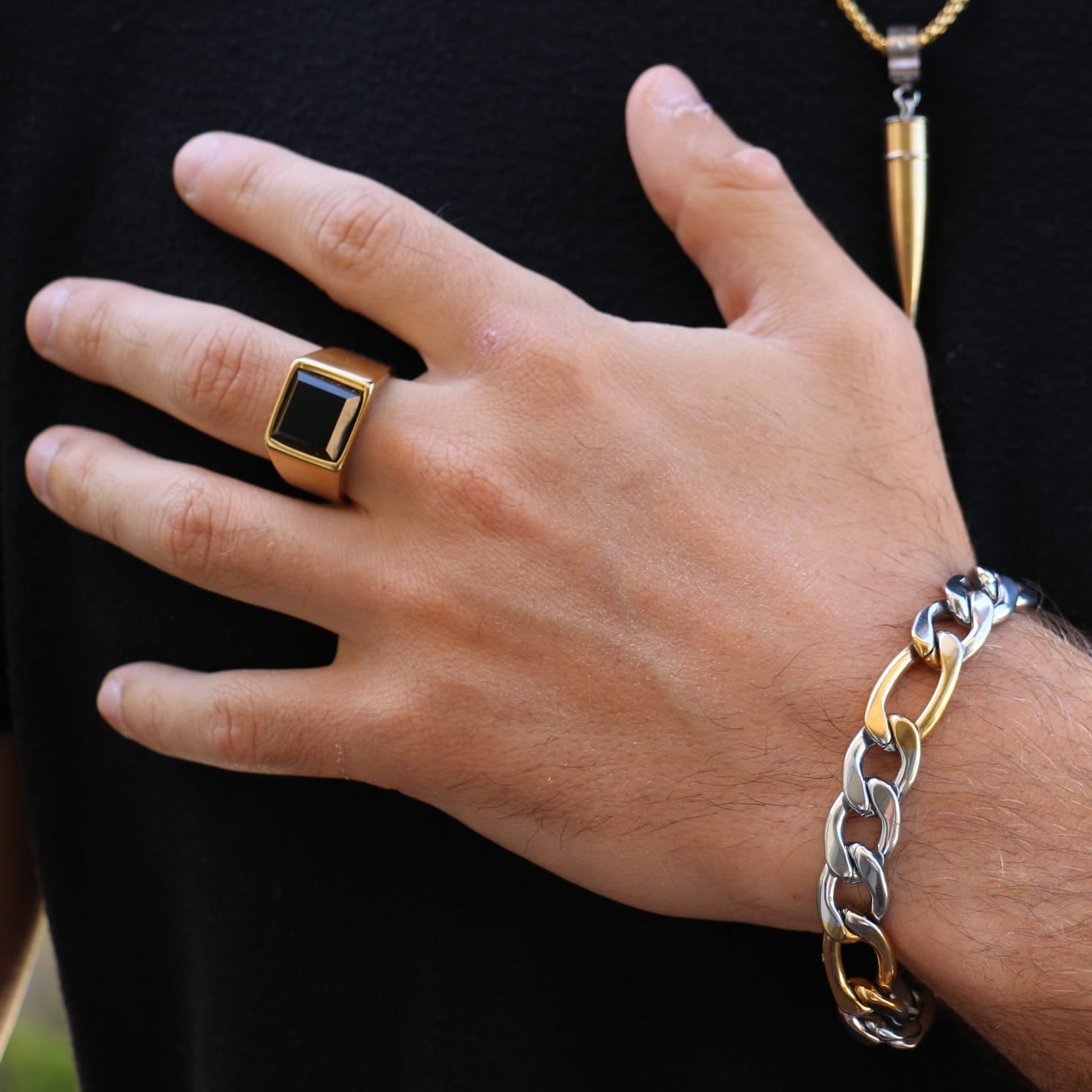 - סוג התכשיט – לכל סוג של תכשיט לגבר יש אימפקט שונה על המראה שלו. לדוגמא: