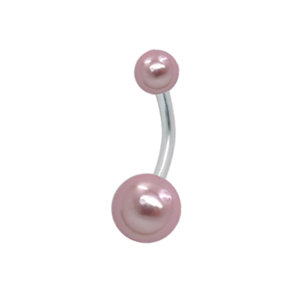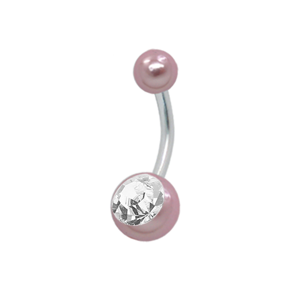 עגיל פירסינג בטבור - פנינה ורודה וקריסטל