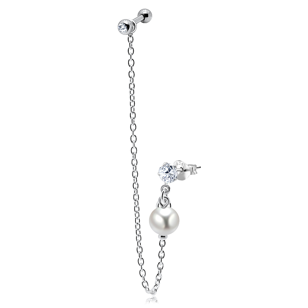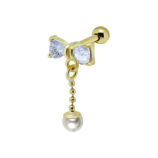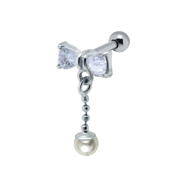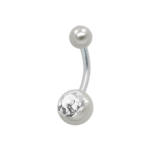עגיל פירסינג בטבור - פנינה לבנה וקריסטל