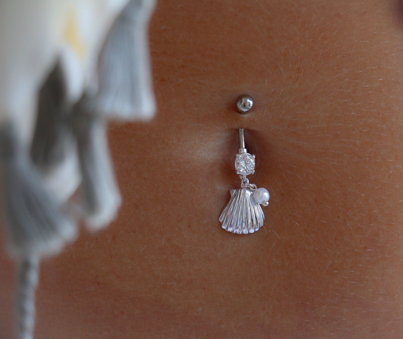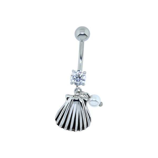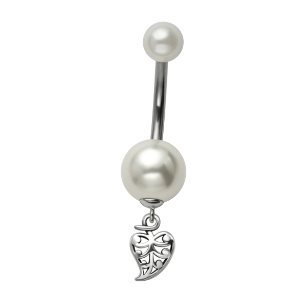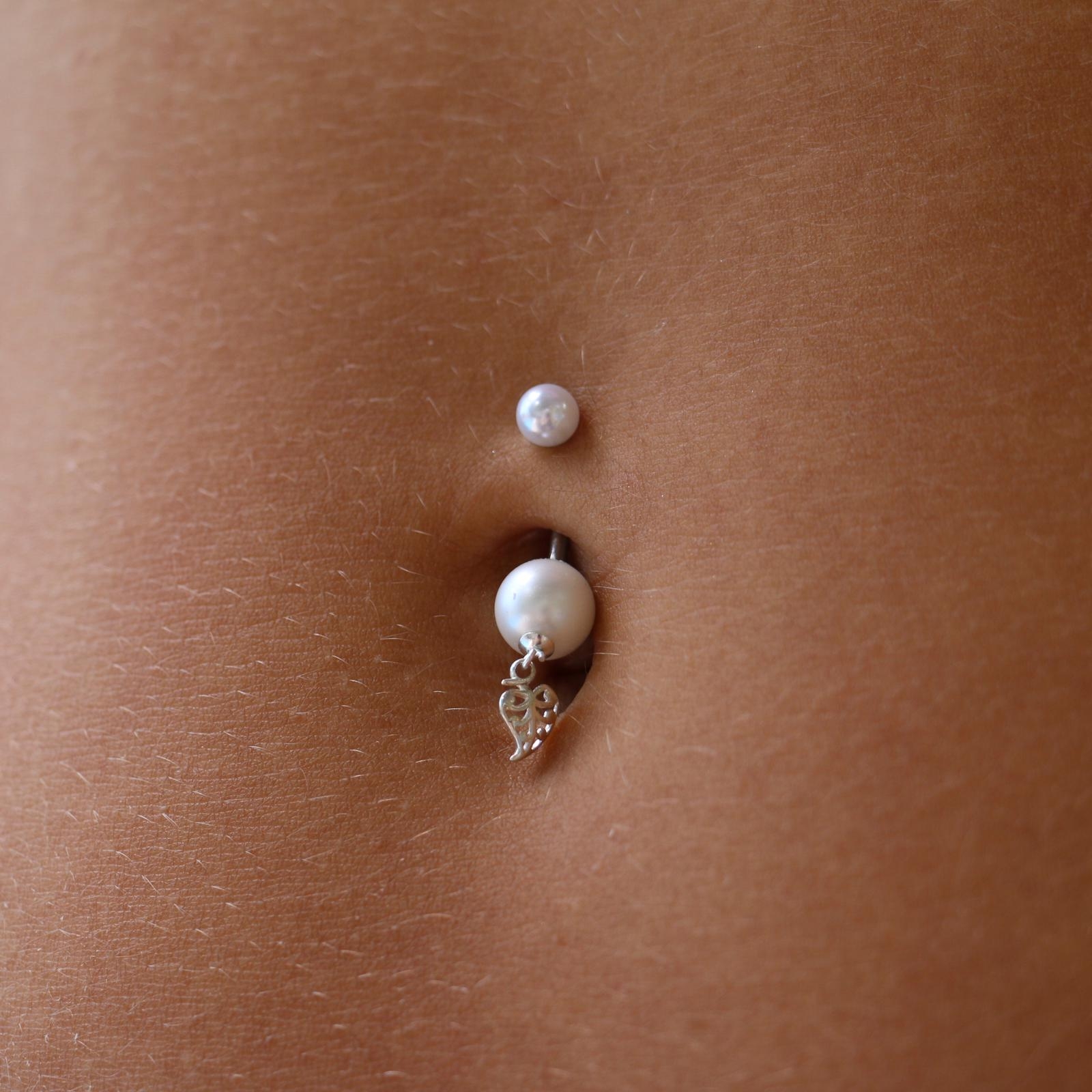 עגיל פירסינג בטבור - פנינה לבנה