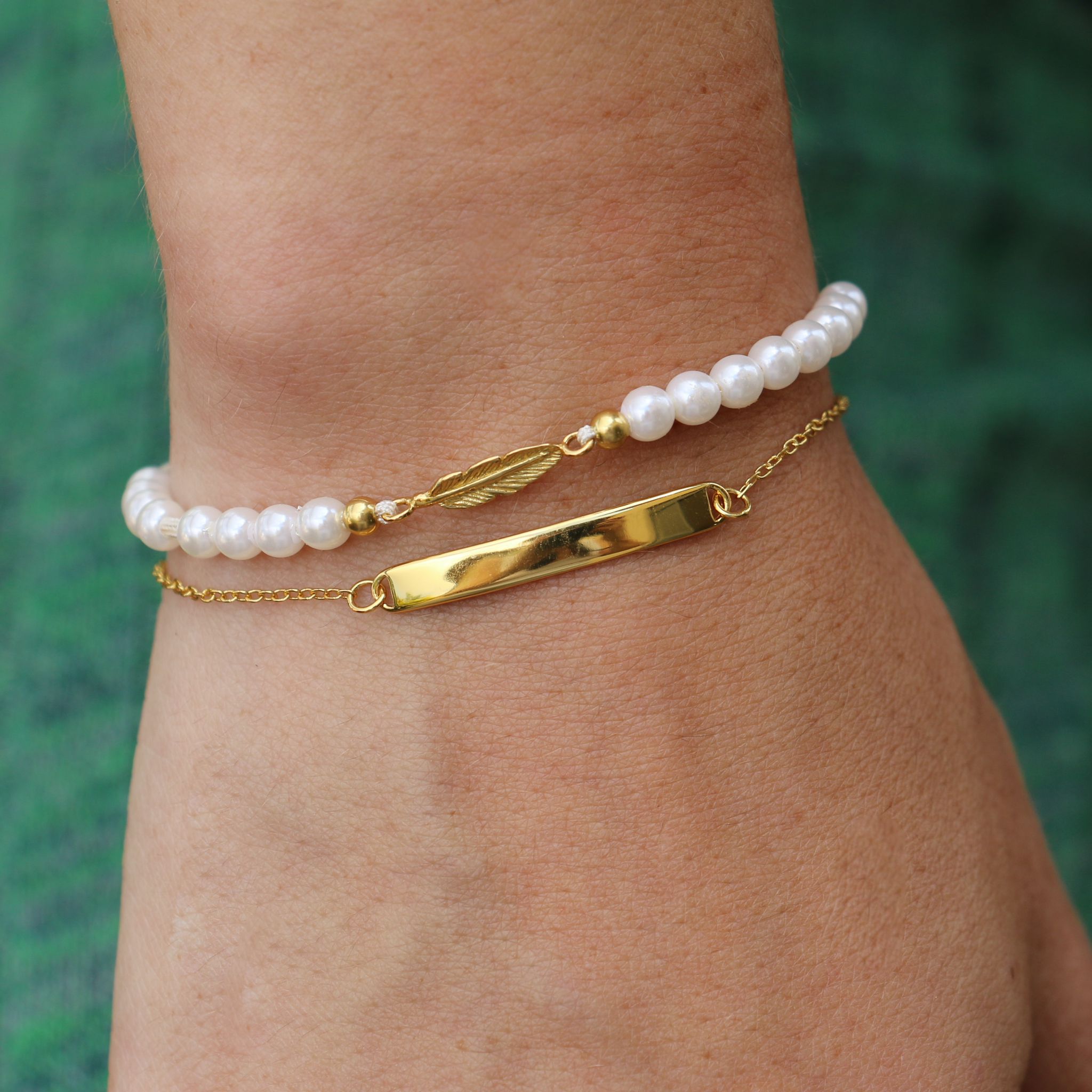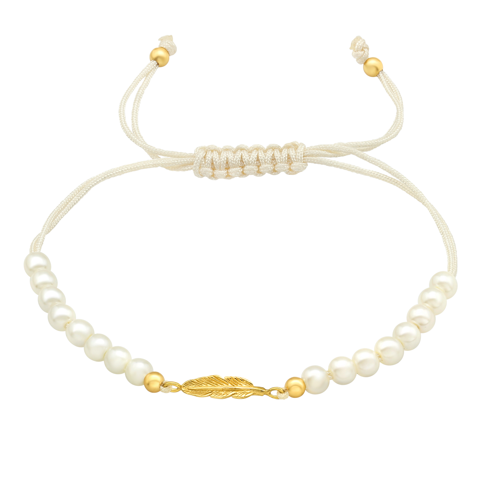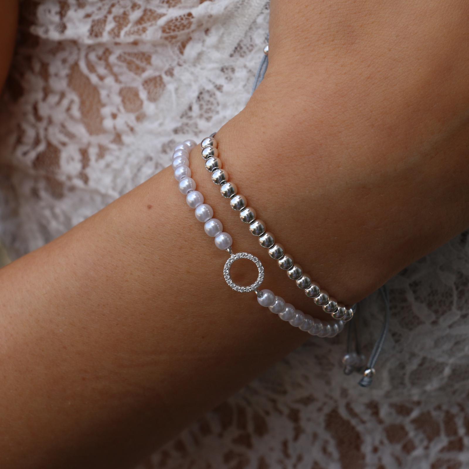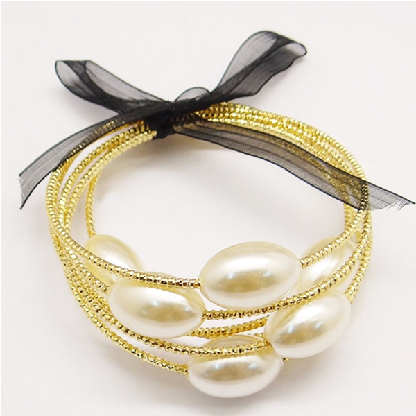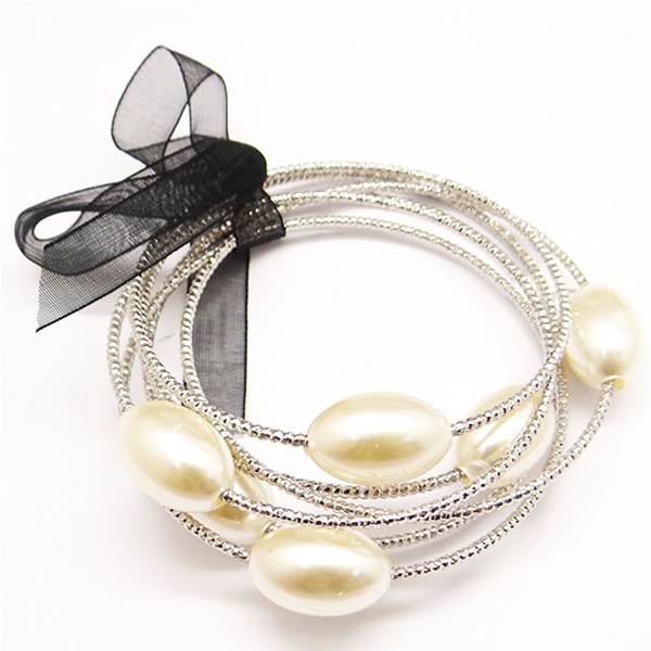 חמישה צמידים קשורים - חרוזים דמוי פנינה