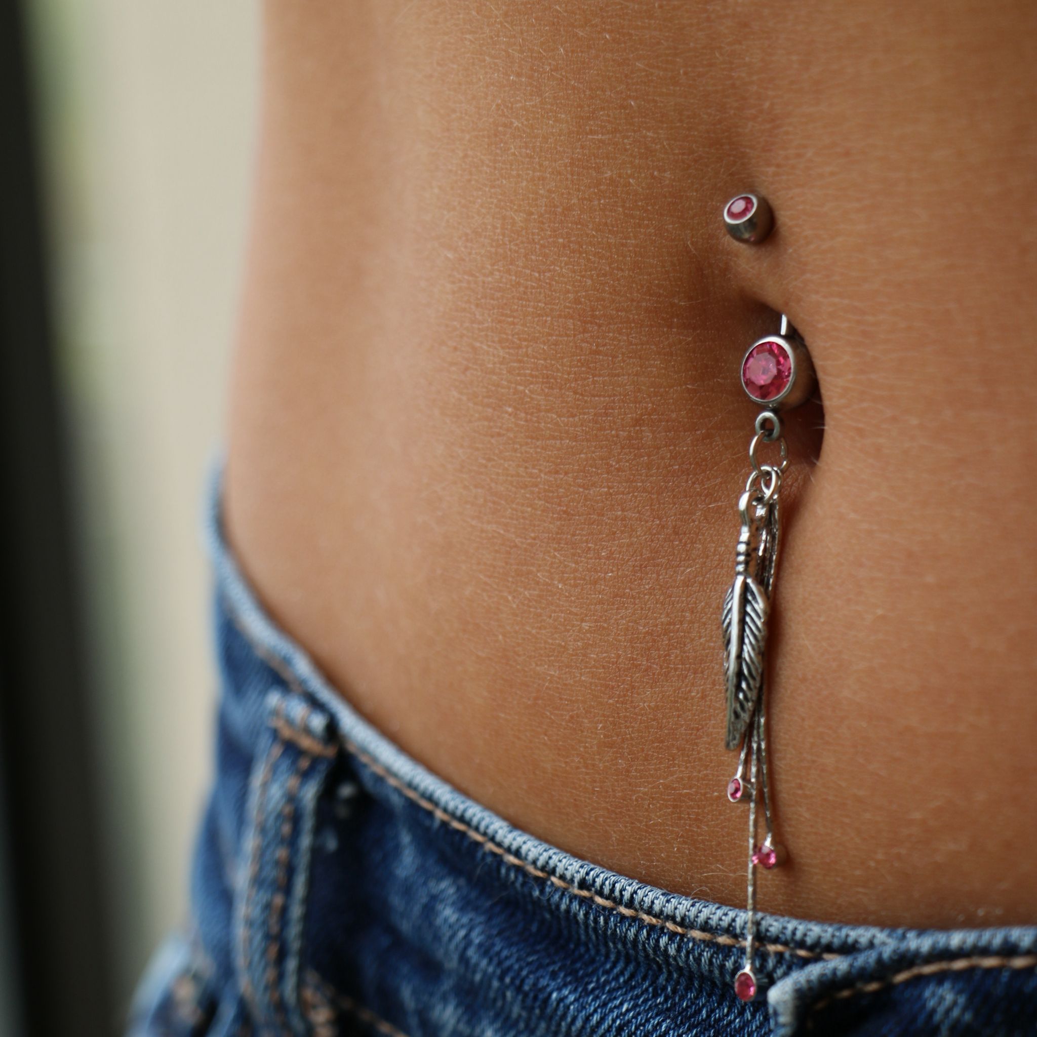 עגיל פירסינג בטבור - ביזנטי פעמון מעוטר עם שרשראות