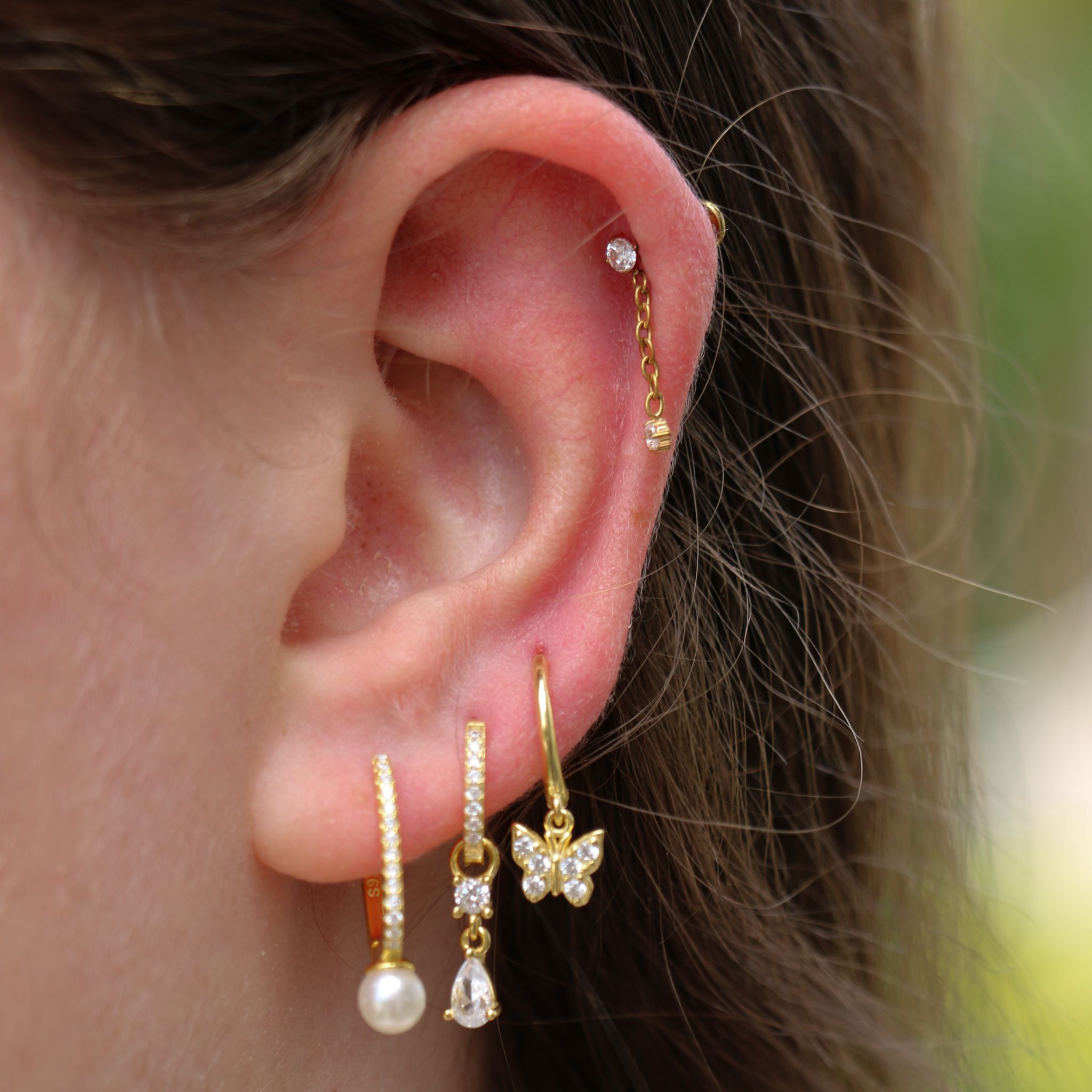 עגיל פירסינג הליקס / טבור חישוק - ציפוי זהב עיטור כדורים