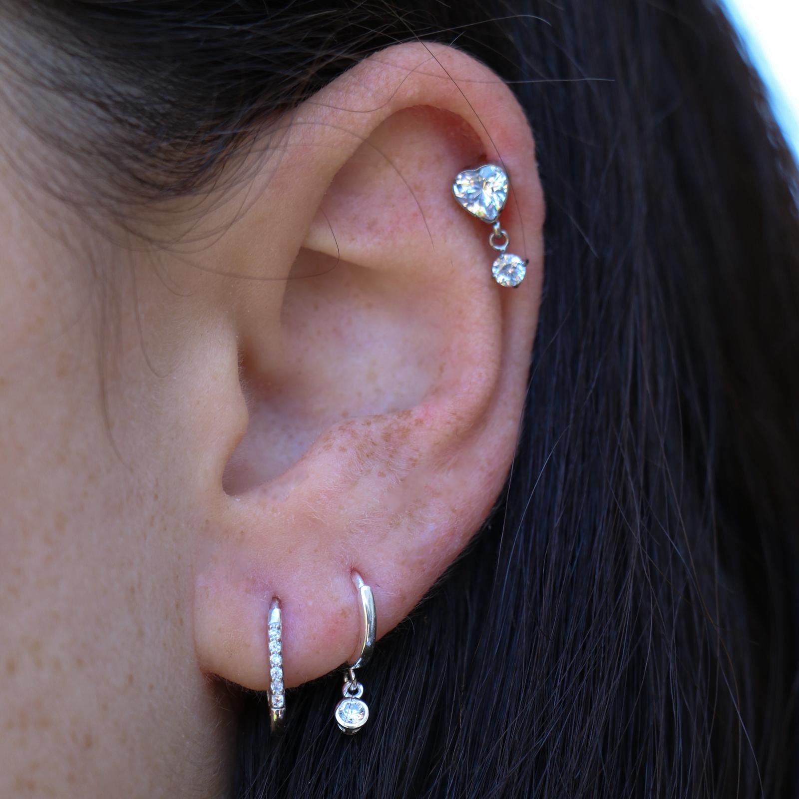 עגיל פירסינג הליקס / ספטום  - חישוק קריסטלים לבנים סגירה בכיפוף