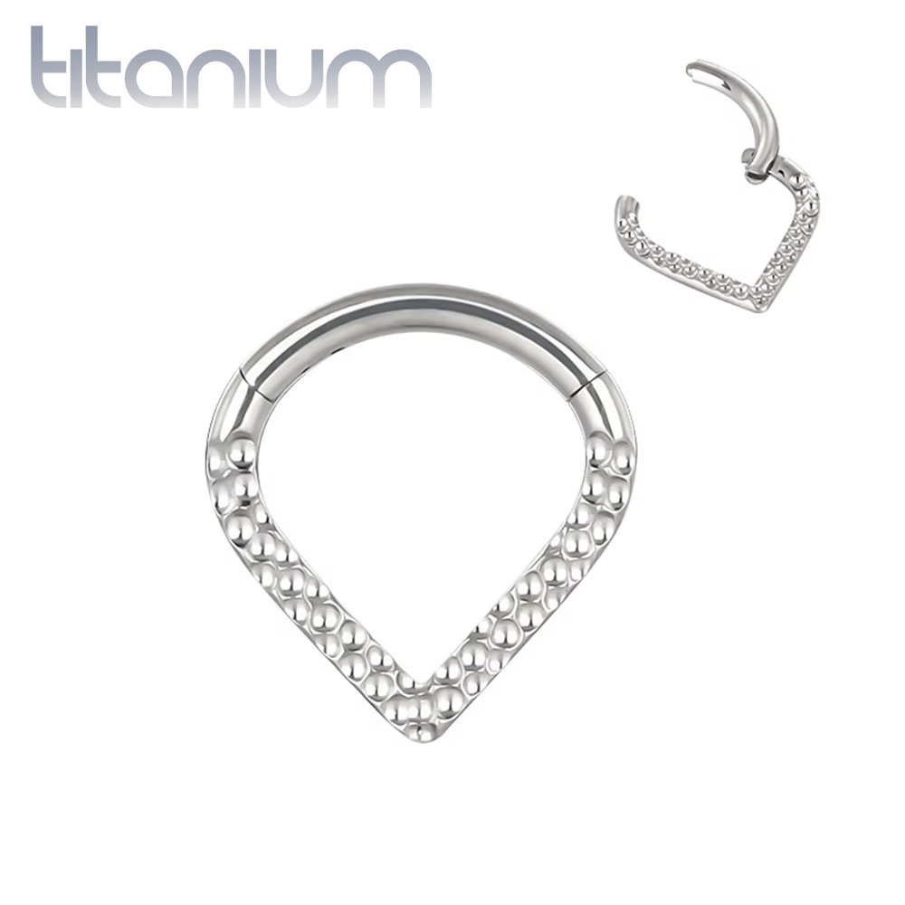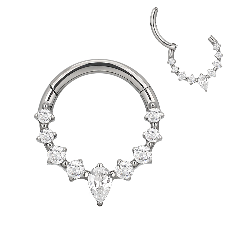 פירסינג טיטניום הוא פירסינג קל משקל והיפואלרגני ולכן מתאים במיוחד לסובלים מרגישויות. צבעו כסוף אפור, כהה יותר מצבע מתכת סרג’יקל סטיל או כסף 925.
