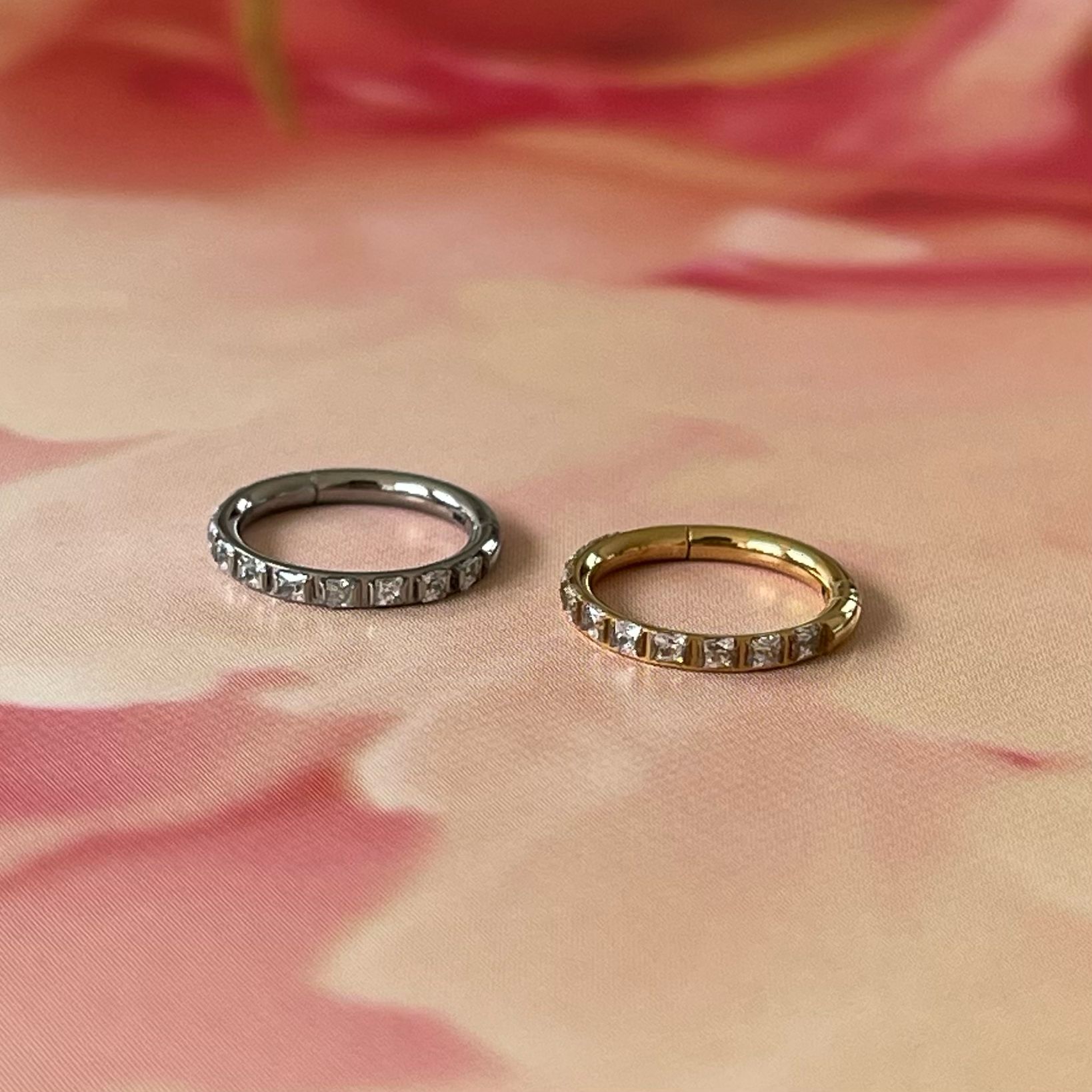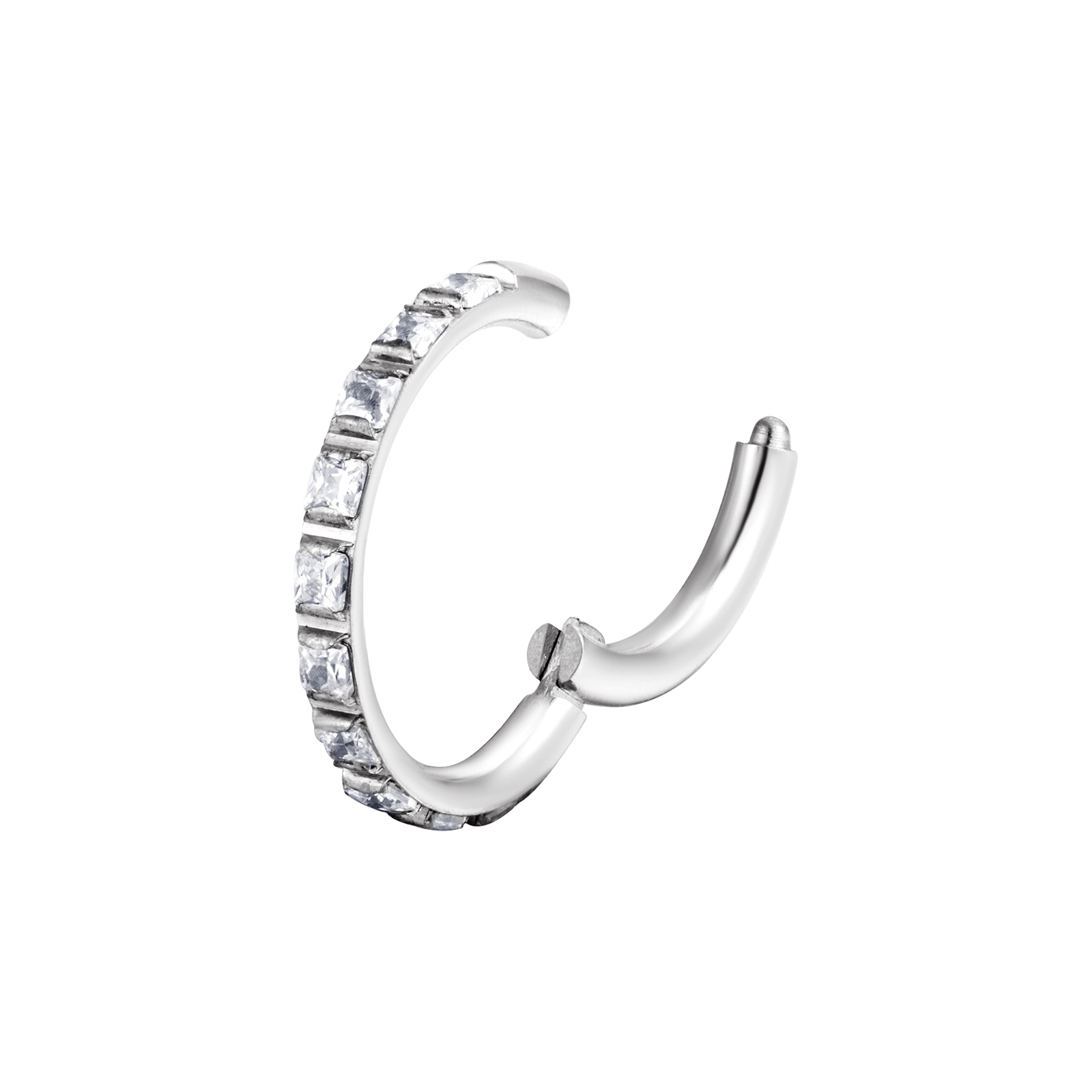 עגיל הליקס / קונץ' טבעת קליקר מטיטניום 1.2 * 12 / 10 / 8 מ"מ וקריסטלים ריבועים לבנים