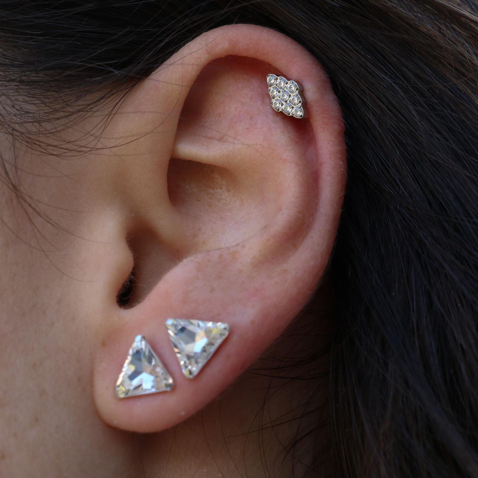 עגיל הליקס / קונץ' / פלאט מטיטניום וציפוי זהב – מעויין קריסטלים לבנים בהברגה
