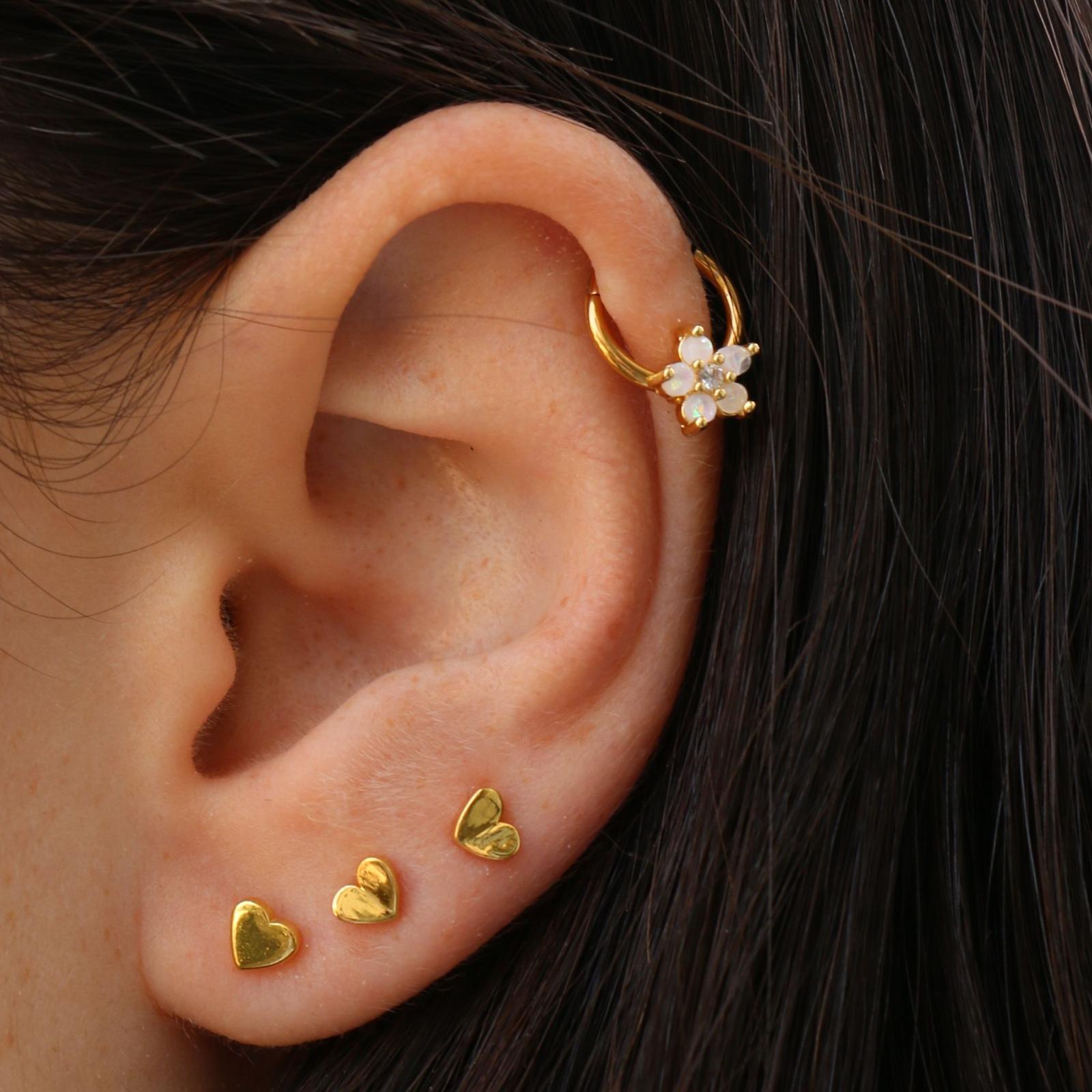 עגילים צמודים מכסף וציפוי זהב – לב חצוי