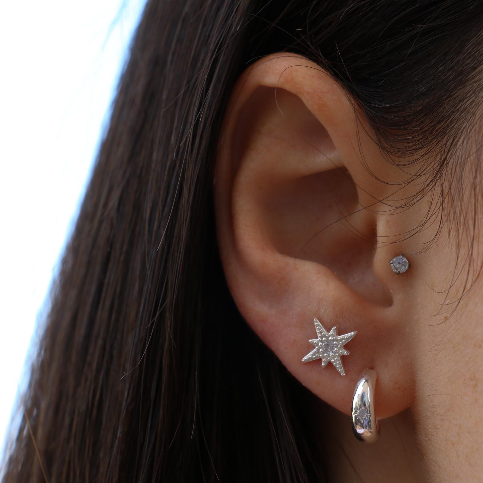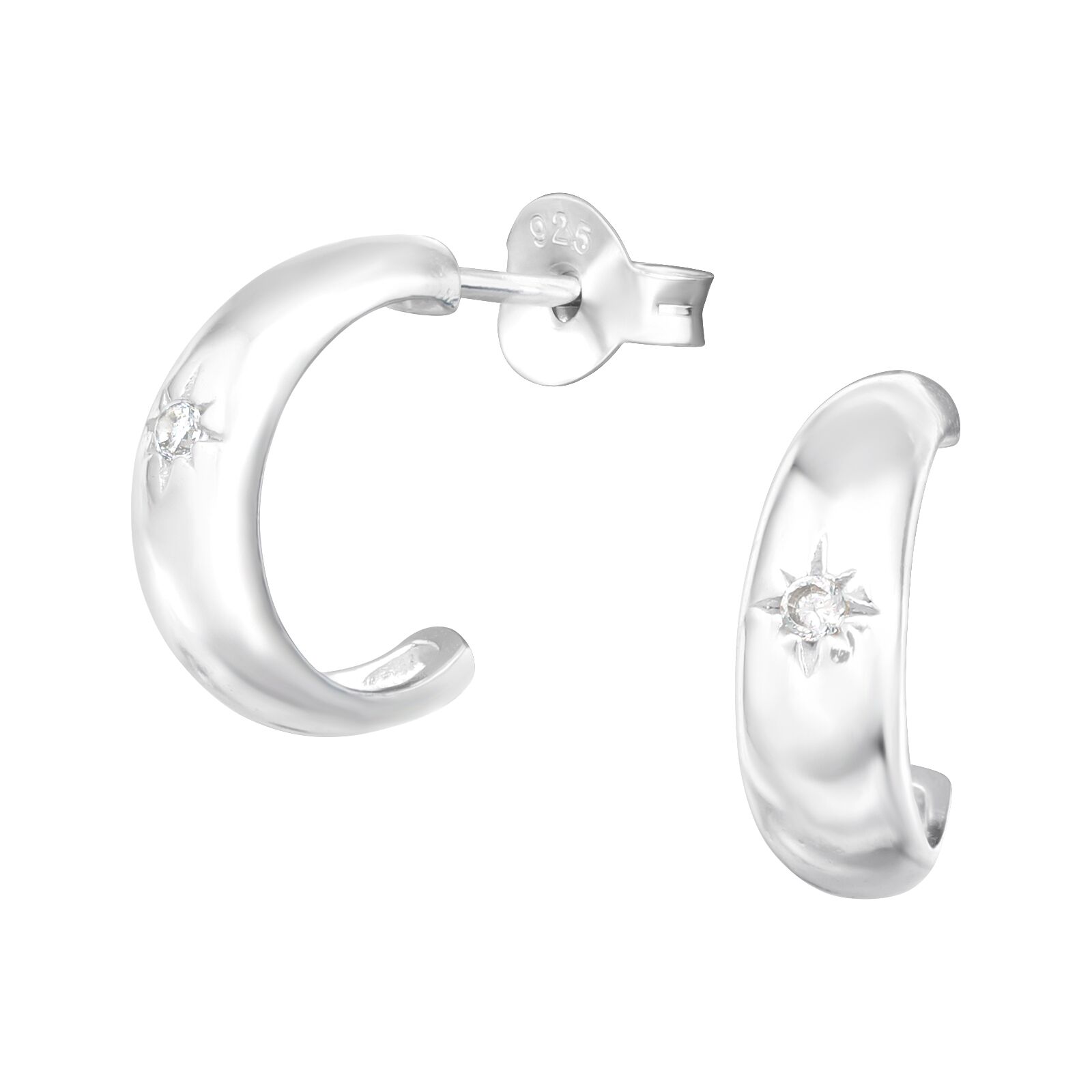 עגילים צמודים מכסף – קשת של 10 ממ כוכב וקריסטל לבן