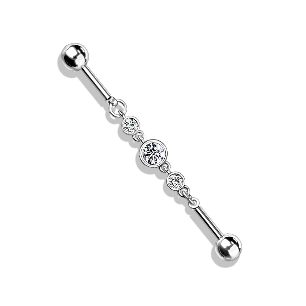 עגיל אינדסטריאל – שרשרת של קריסטלים לבנים