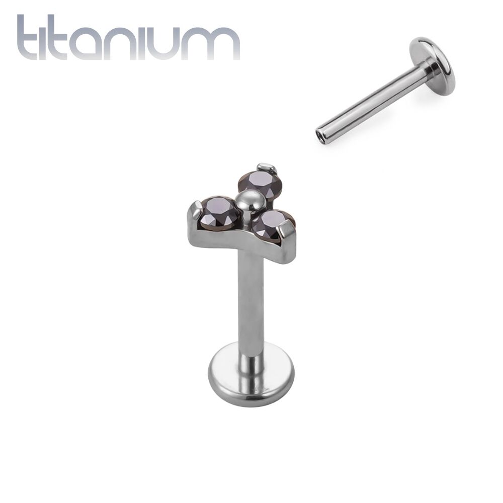עגיל הליקס / טראגוס / קונץ' / פלאט מטיטניום – פרח שלושה קריסטלים שחורים בהברגה