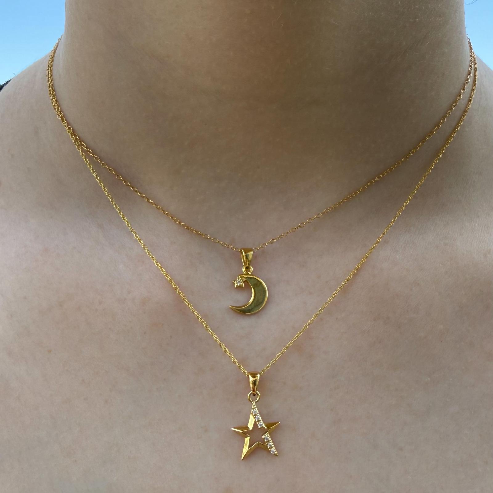 שרשרת מכסף וציפוי זהב – כוכב עם קריסטלים לבנים