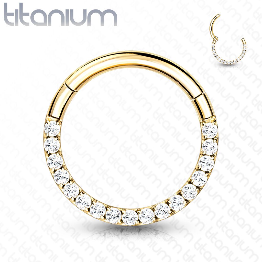 עגיל טראגוס / הליקס / קונץ' טבעת קליקר מטיטניום וציפוי זהב 1.2 * 10 / 8 / 6 מ"מ וקריסטלים לבנים