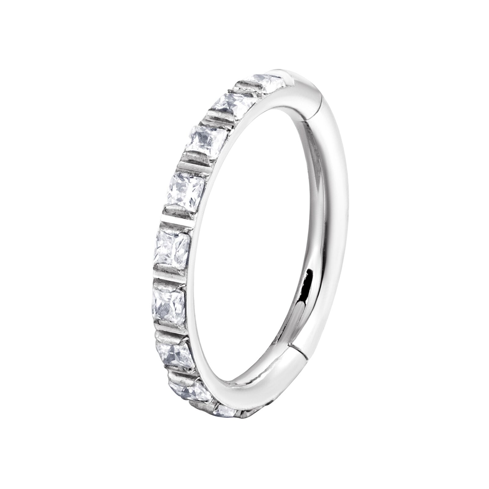 עגיל הליקס / קונץ' טבעת קליקר מטיטניום 1.2 * 12 / 10 / 8 מ"מ וקריסטלים ריבועים לבנים