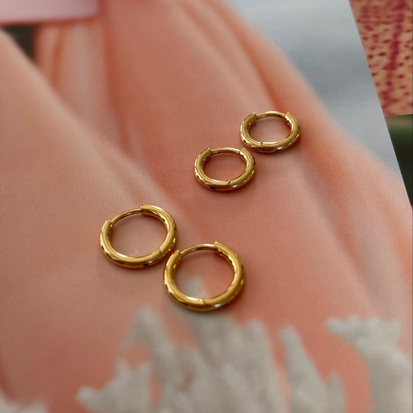זוג עגילי חישוק האגיס 10 מ"מ מטיטניום וציפוי זהב