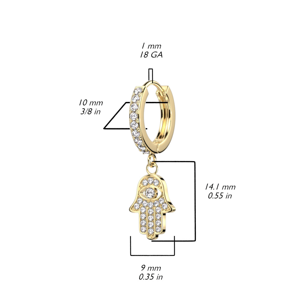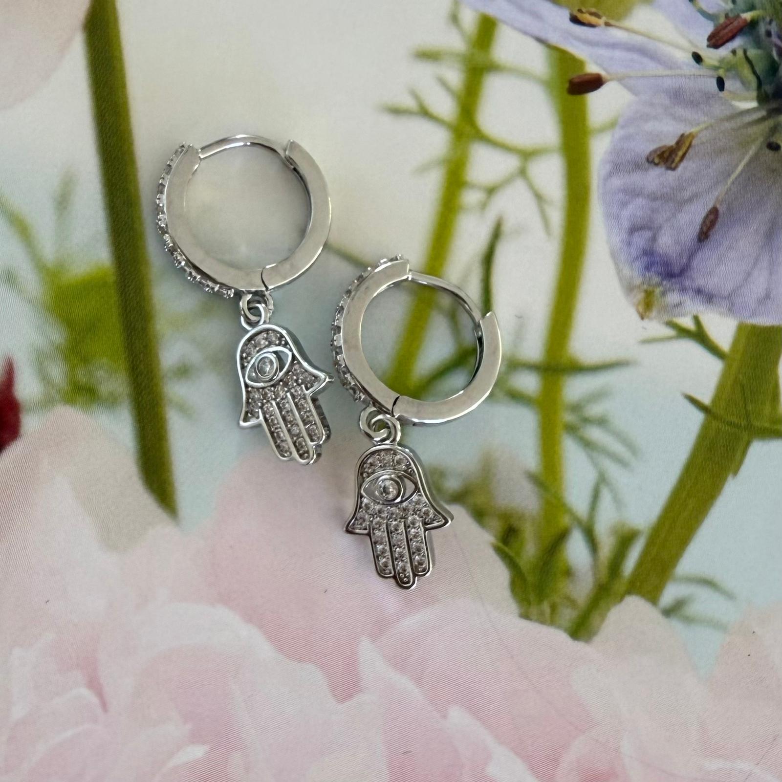 זוג עגילי חישוק האגיס 10 מ"מ מסרג'יקל סטיל חמסה וקריסטלים לבנים