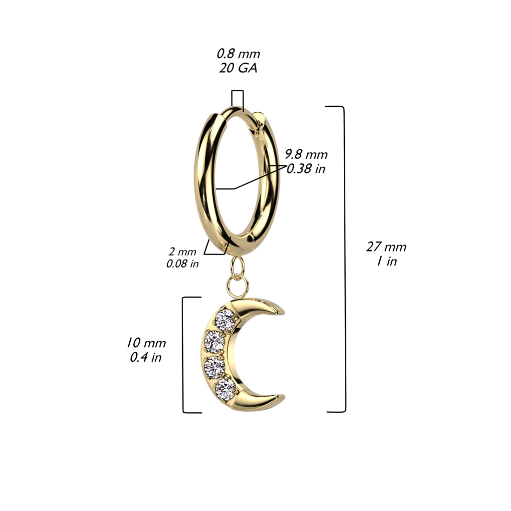 זוג עגילי חישוק האגיס 10 מ"מ מסרג'יקל סטיל ירח וקריסטלים לבנים
