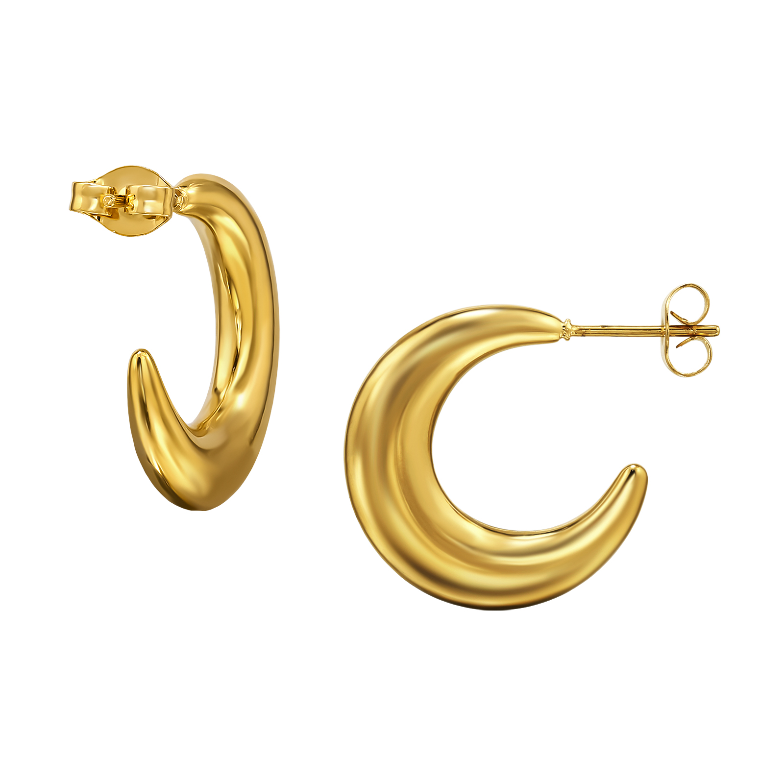 זוג עגילי סטד ירח מסרג'יקל סטיל וציפוי זהב נפוחים 22 מ"מ