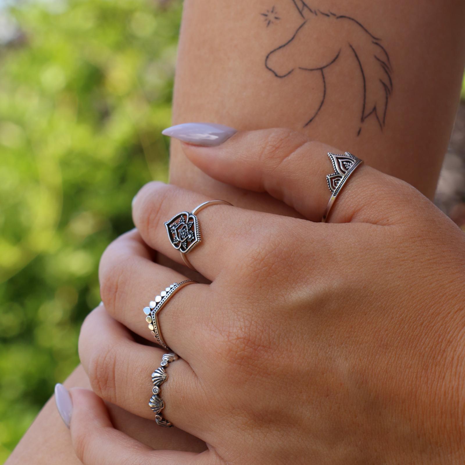 טבעת כסף סגנון אינדונזי כתר מעוטר