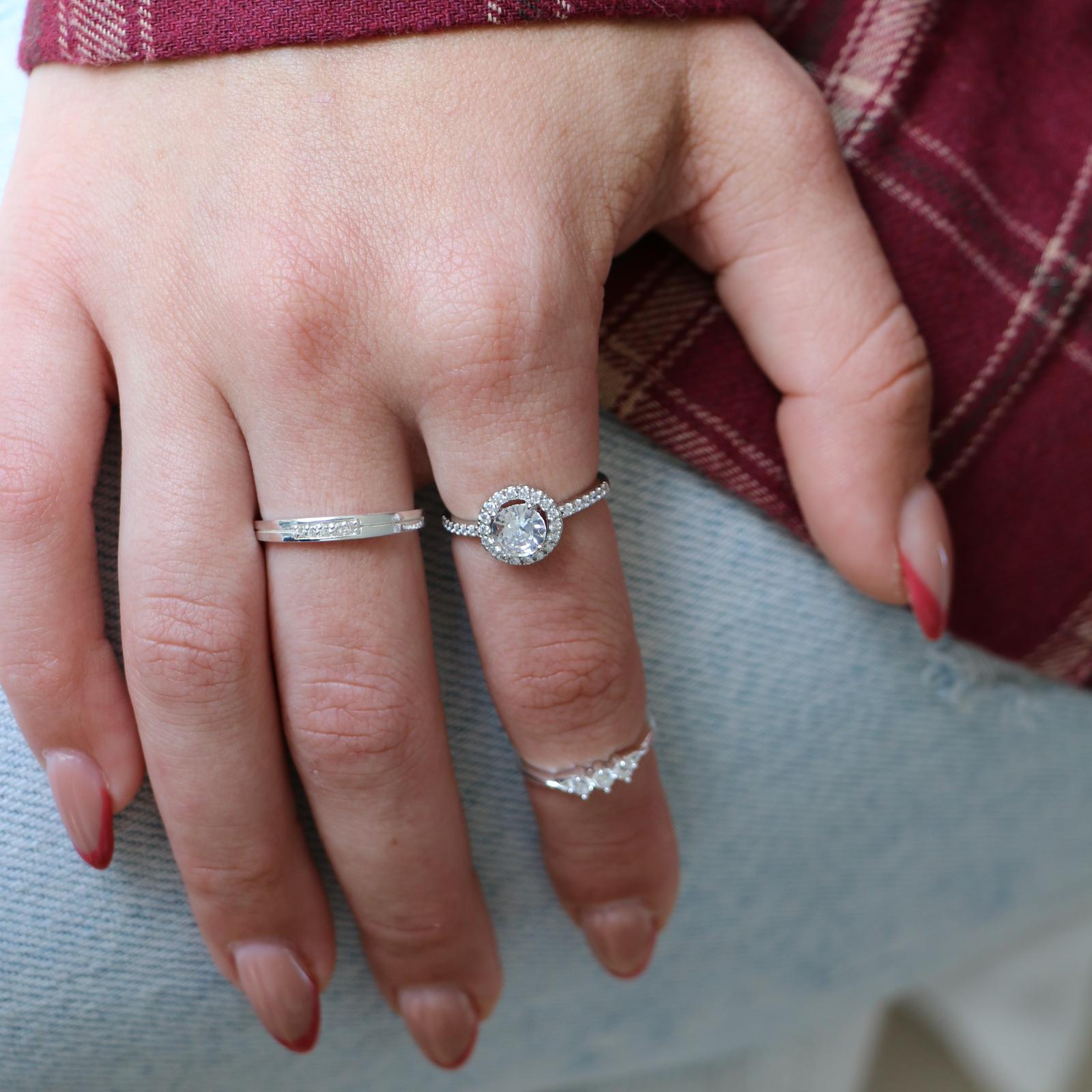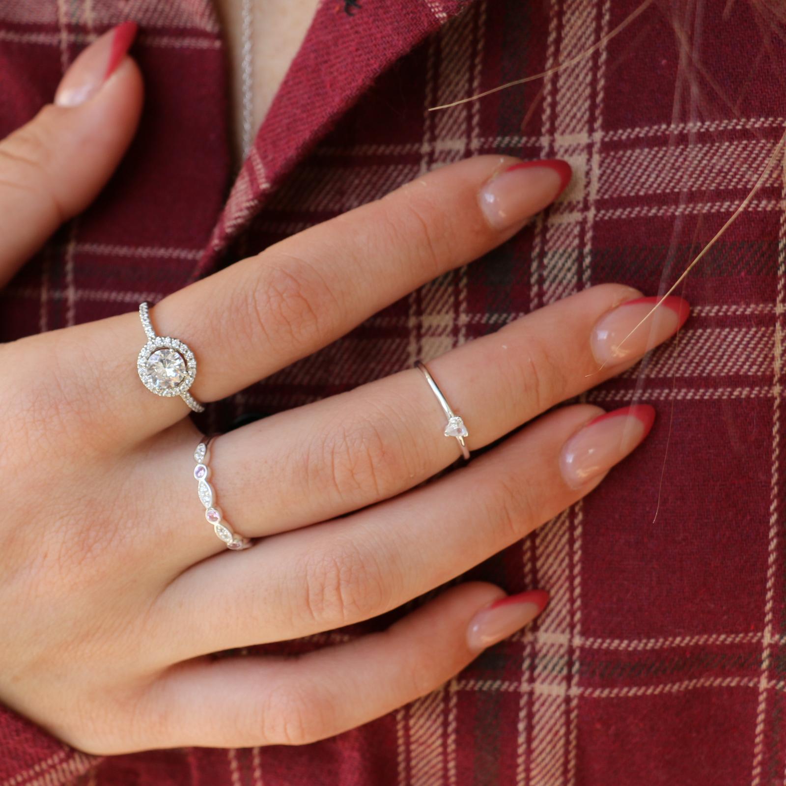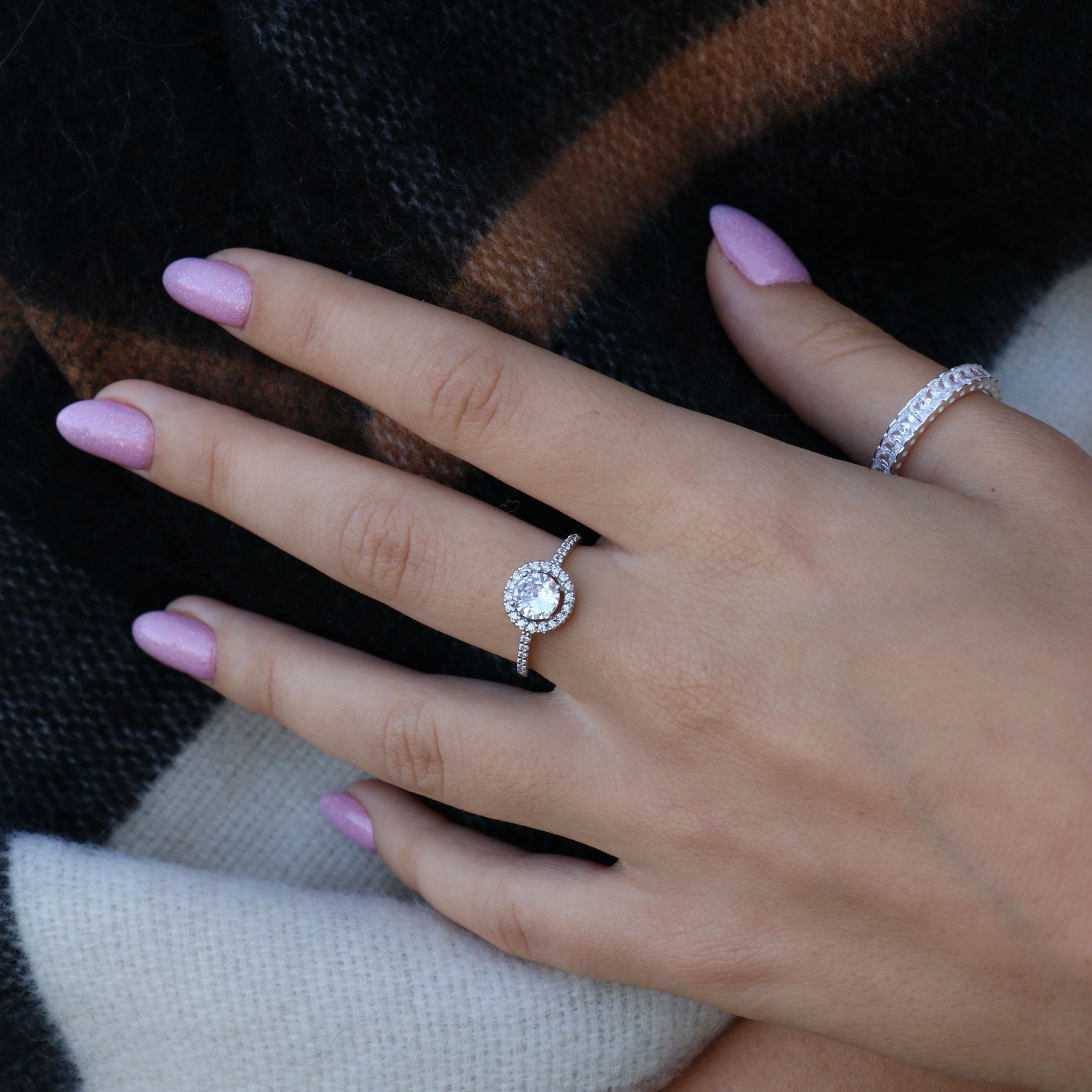 טבעת מכסף – זירקון עגול עם זירקונים לבנים