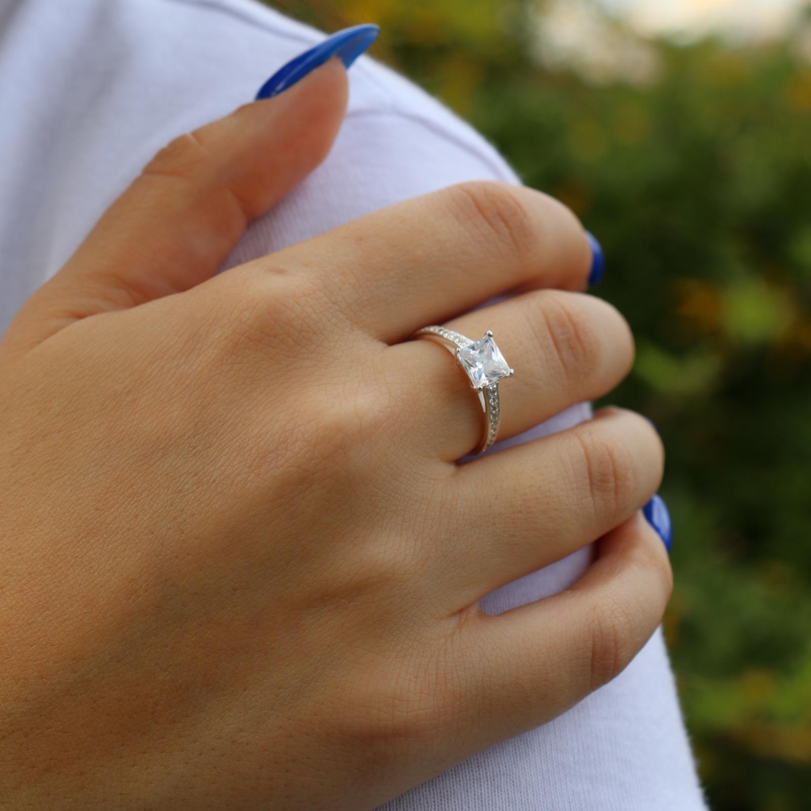 טבעת מכסף – זירקוניה ריבוע וקריסטלים לבנים