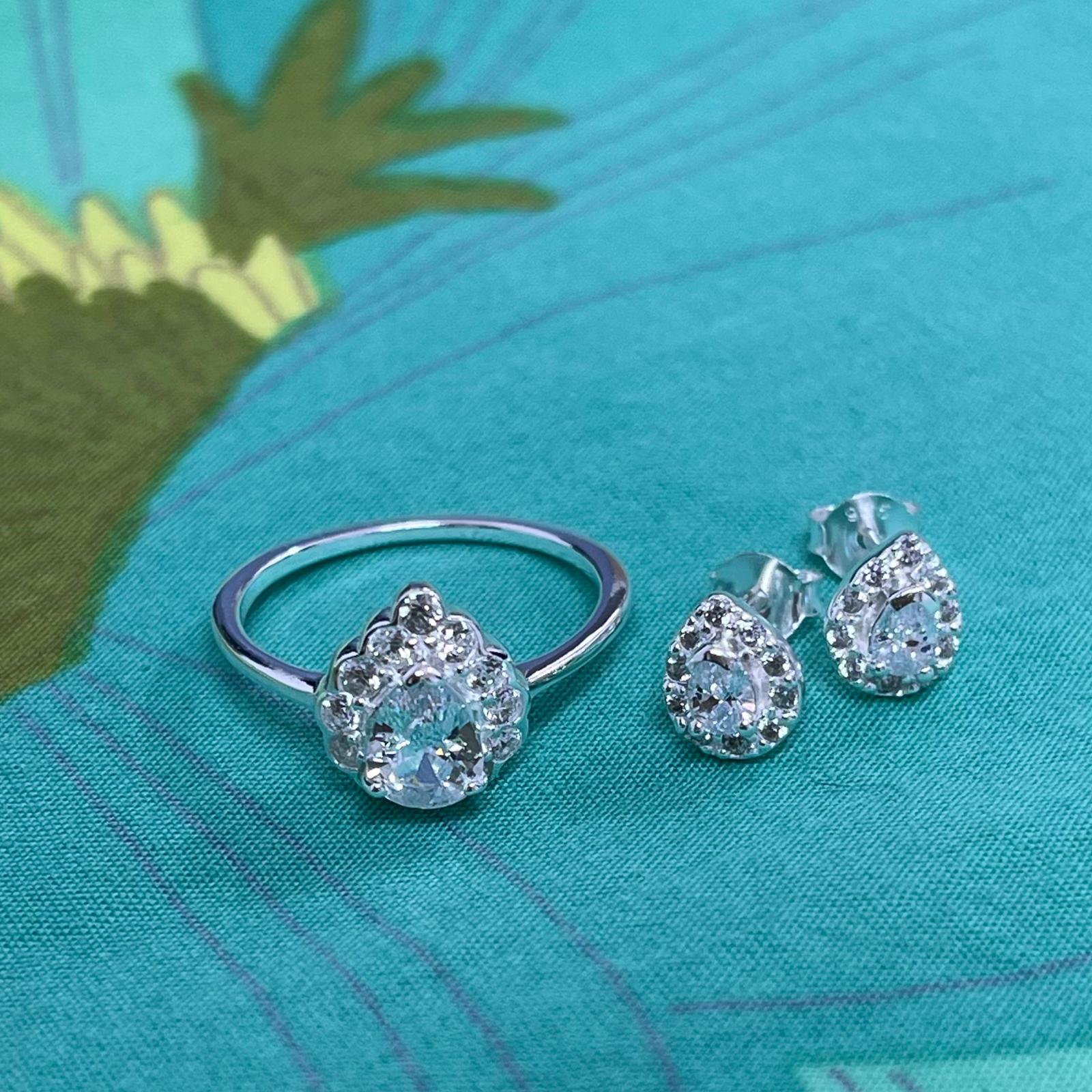 טבעת מכסף – זרקוניה טיפה וקריסטלים לבנים
