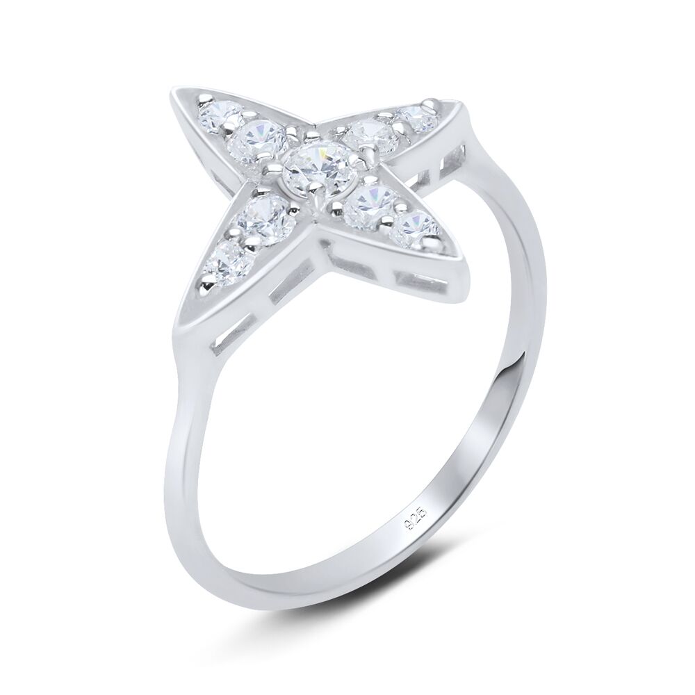 טבעת מכסף – כוכב עם קריסטלים לבנים