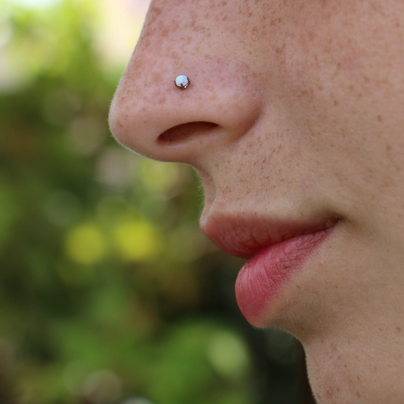 נזם אף מטיטניום וציפוי זהב – אופל לבן משובץ