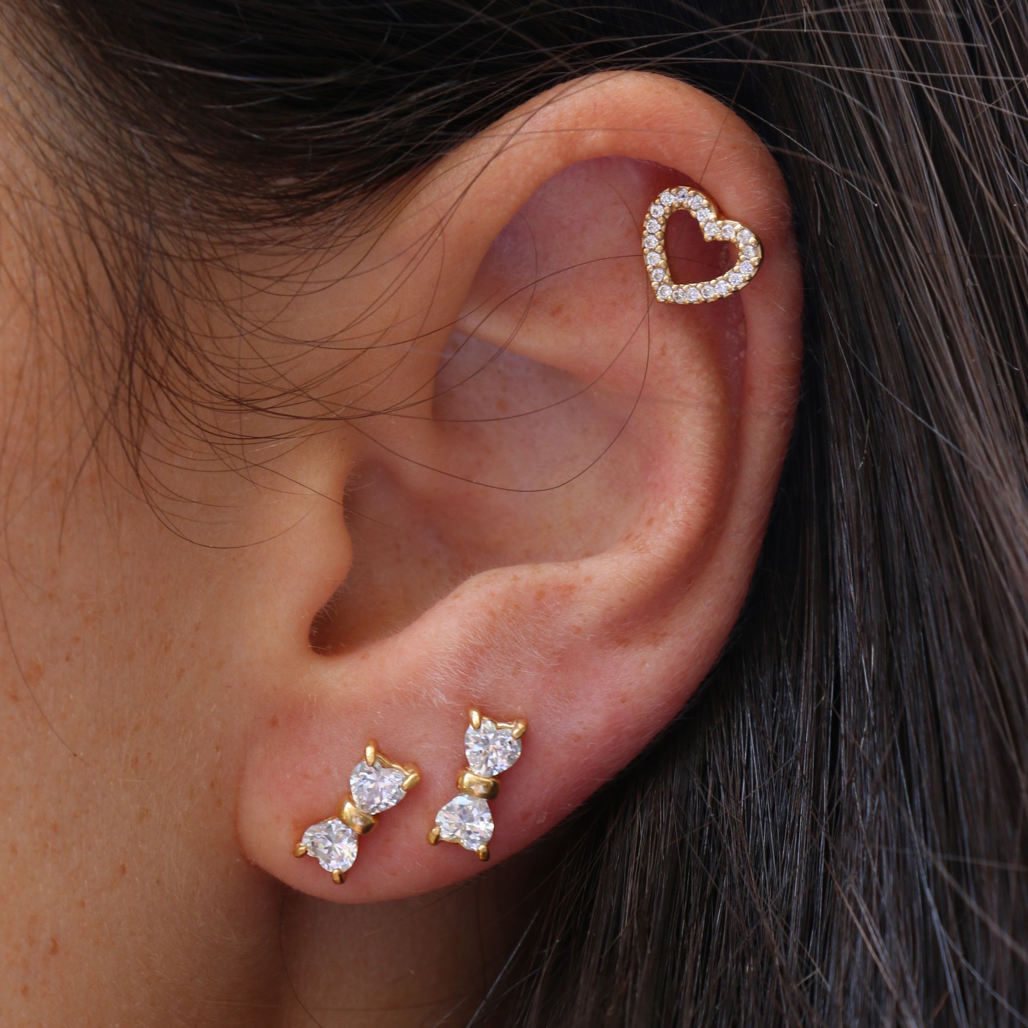 עגילים צמודים -מכסף וציפוי זהב עיטור פפיון וקריסטלים לבנים