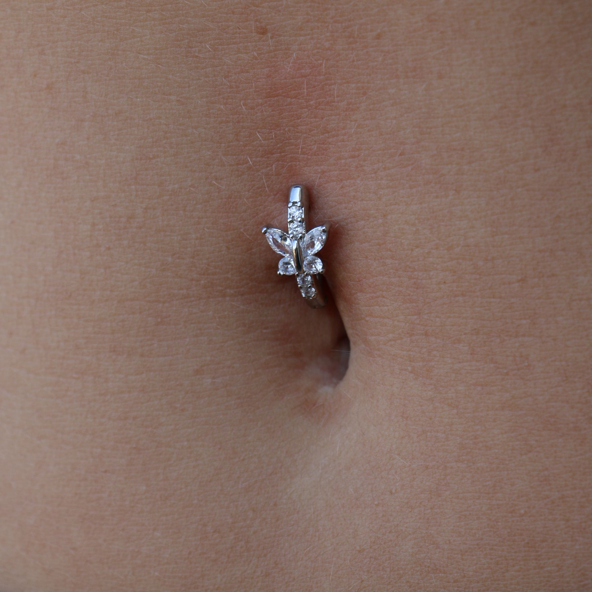 עגילים צמודים מכסף וציפוי זהב – פרפר עם קריסטלים לבנים ושרשרת ופרפר
