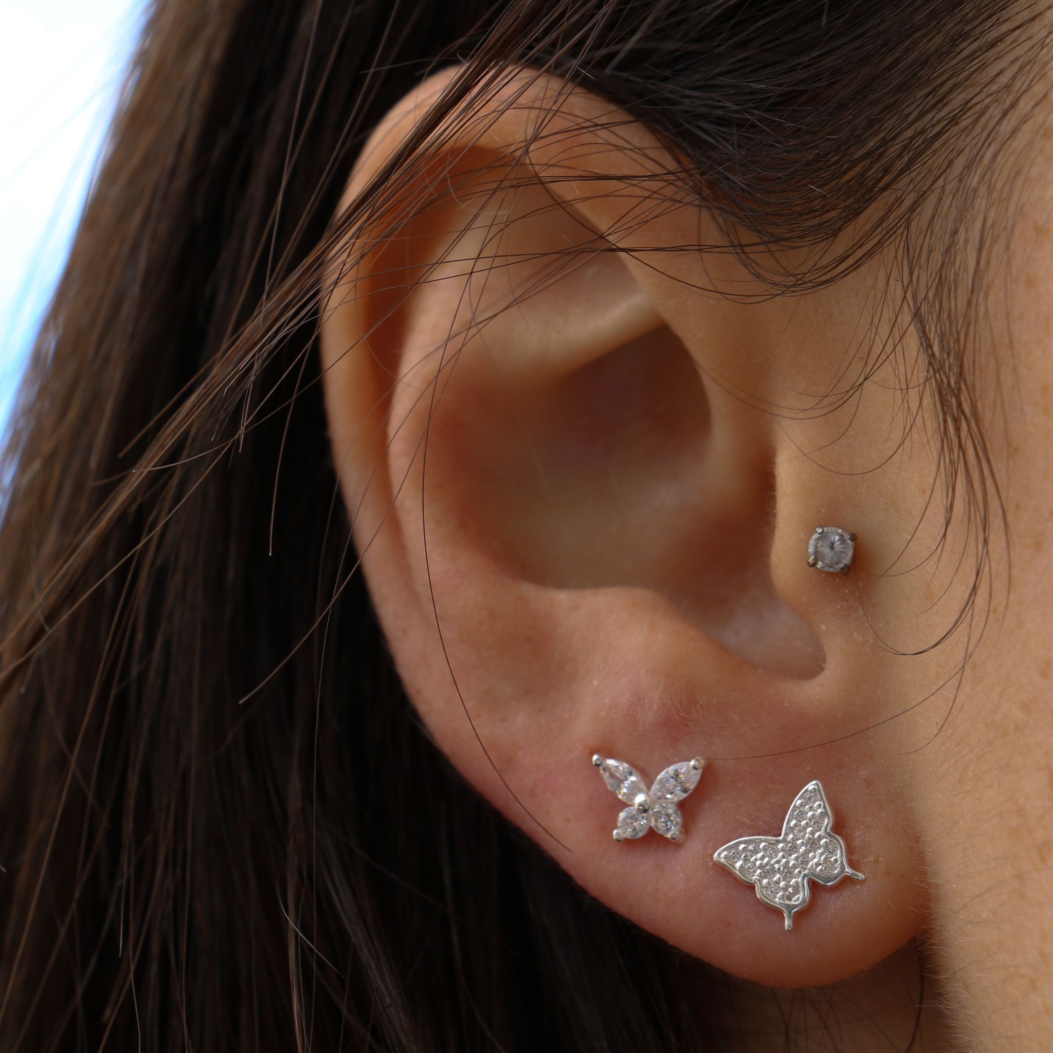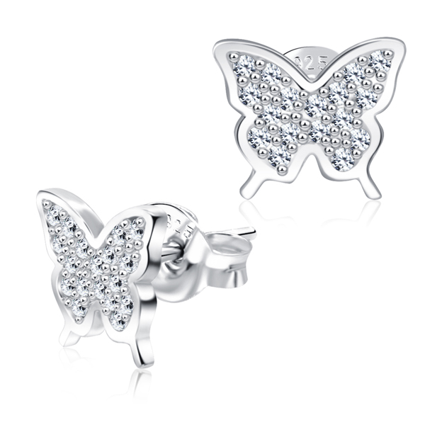 עגילים צמודים מכסף 925 – פרפר עם קריסטלים לבנים
