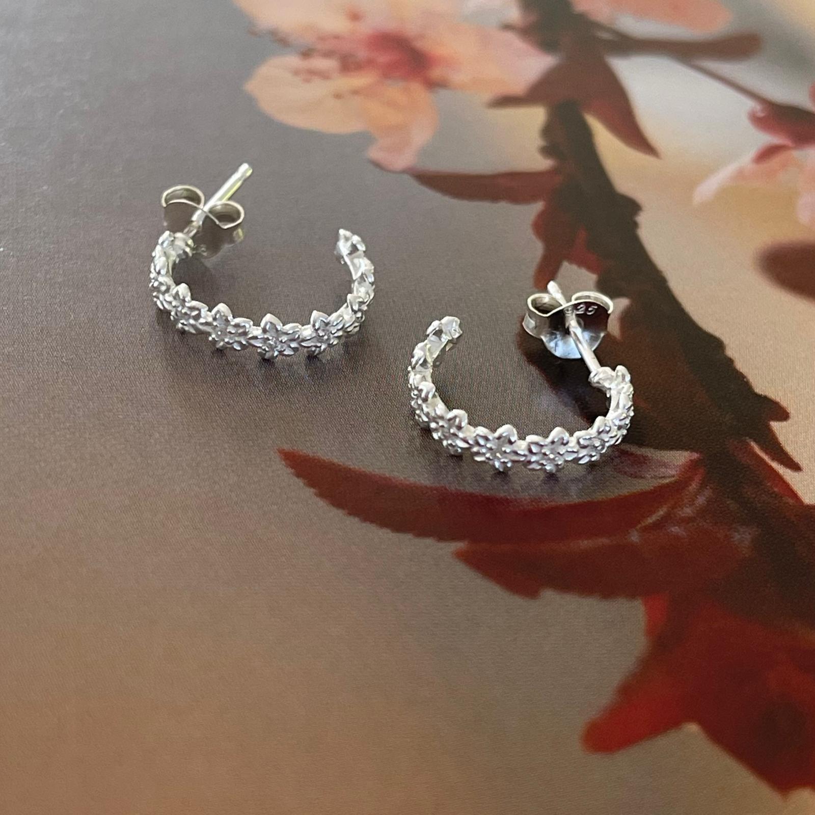 עגילים צמודים מכסף 925 – קשת של פרחים