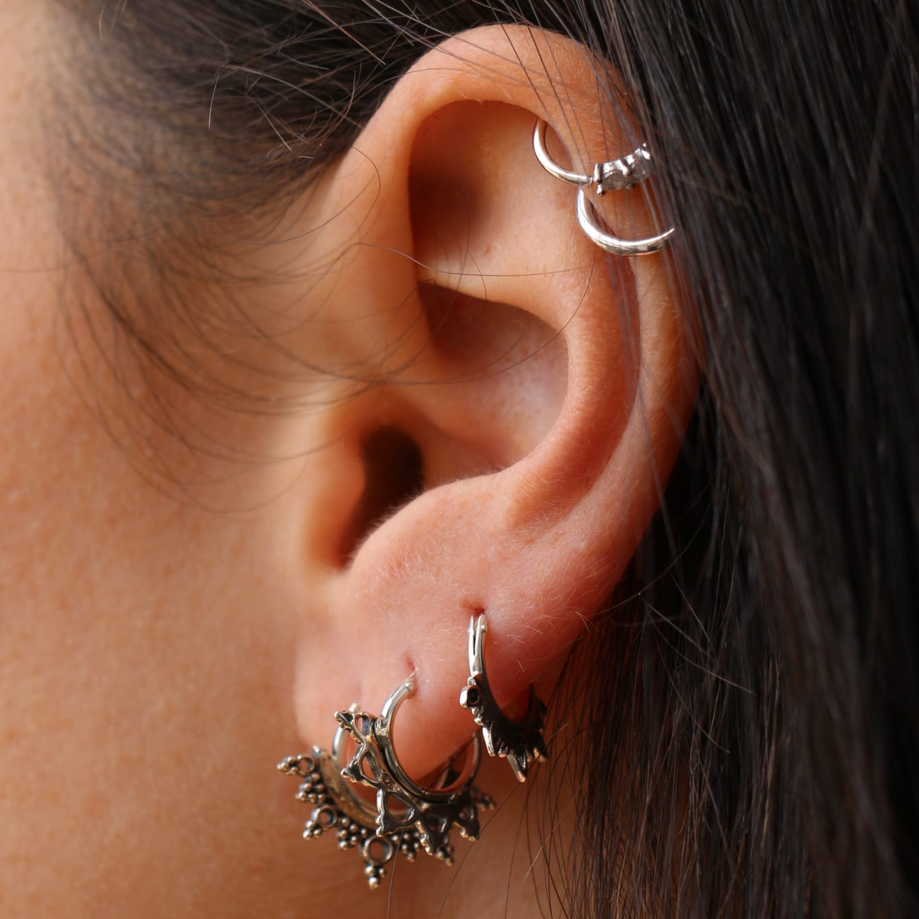 עגילי חישוק אינדונזים – מכסף 8 מ"מ מעוטר נקודות