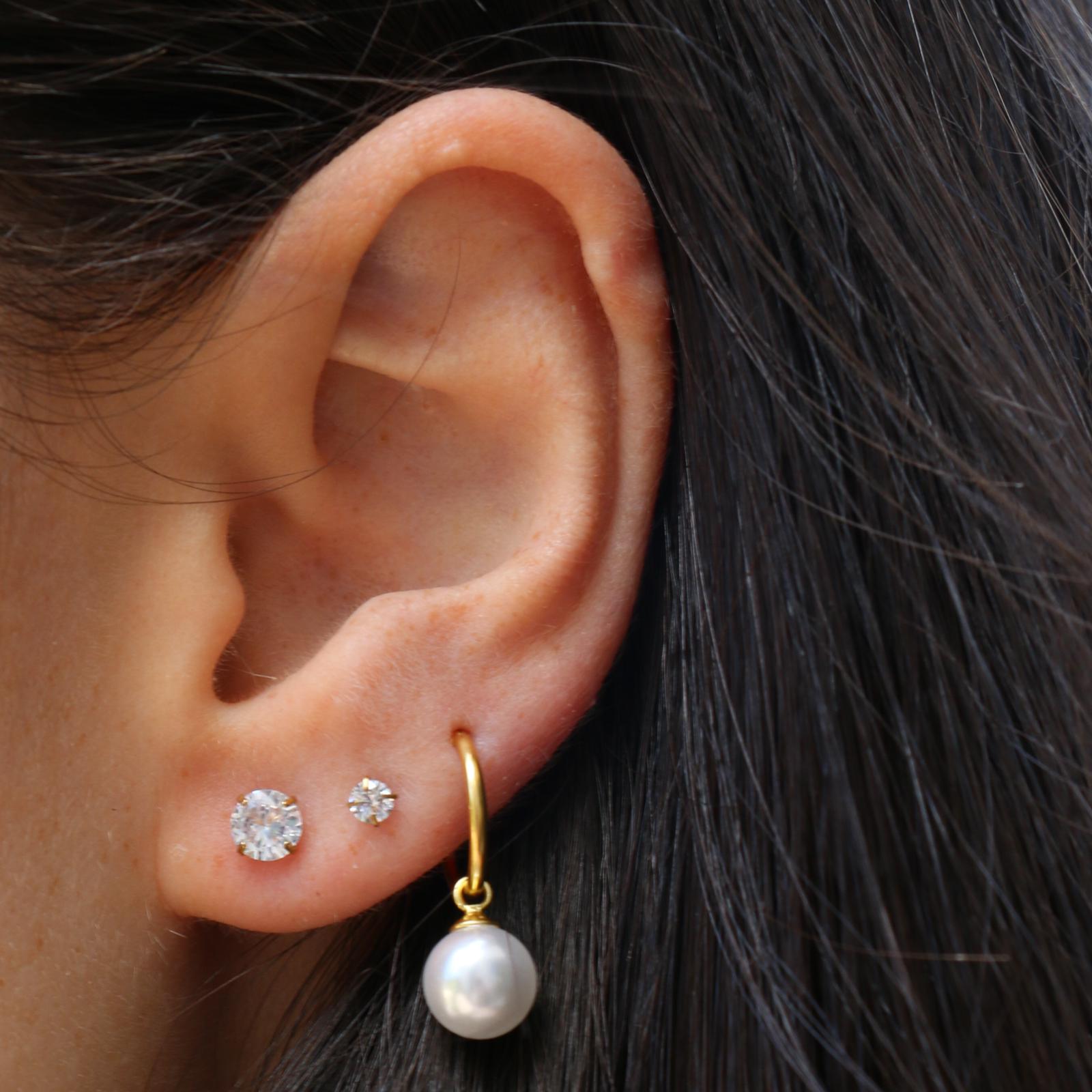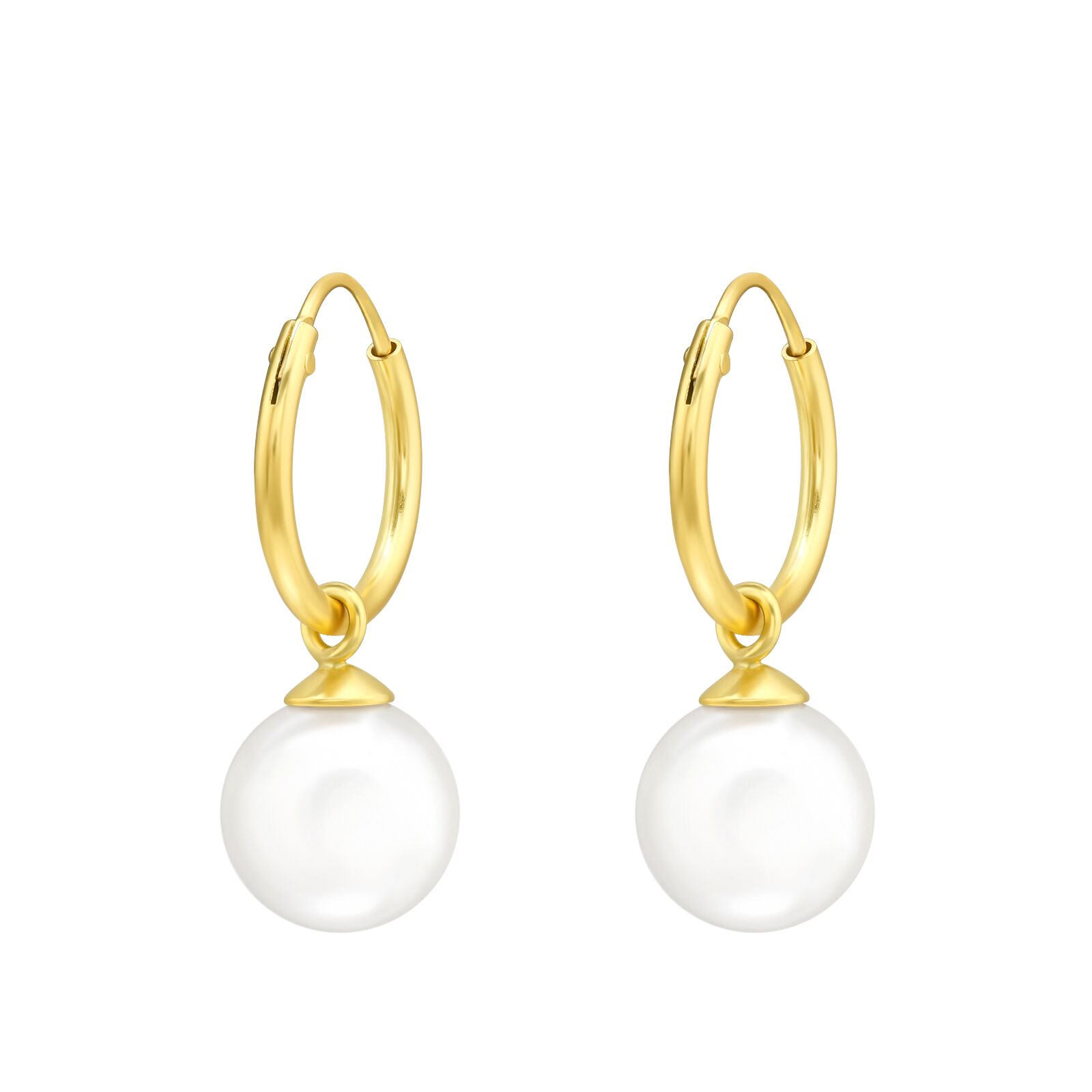 עגילי חישוק מכסף וציפוי זהב – פנינה