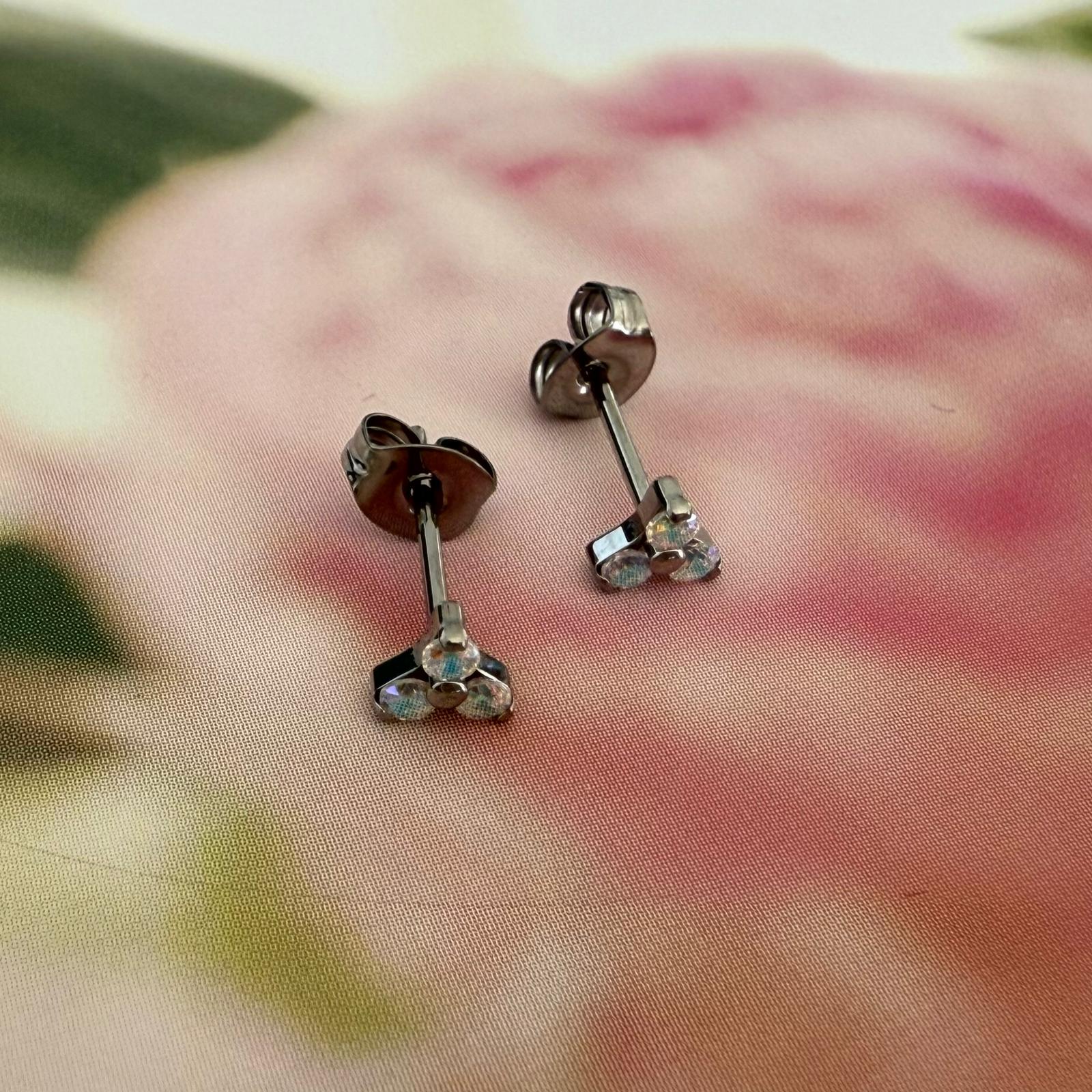 עגילי סטד מטיטניום – פרח עם שלושה קריסטלים ריינבו