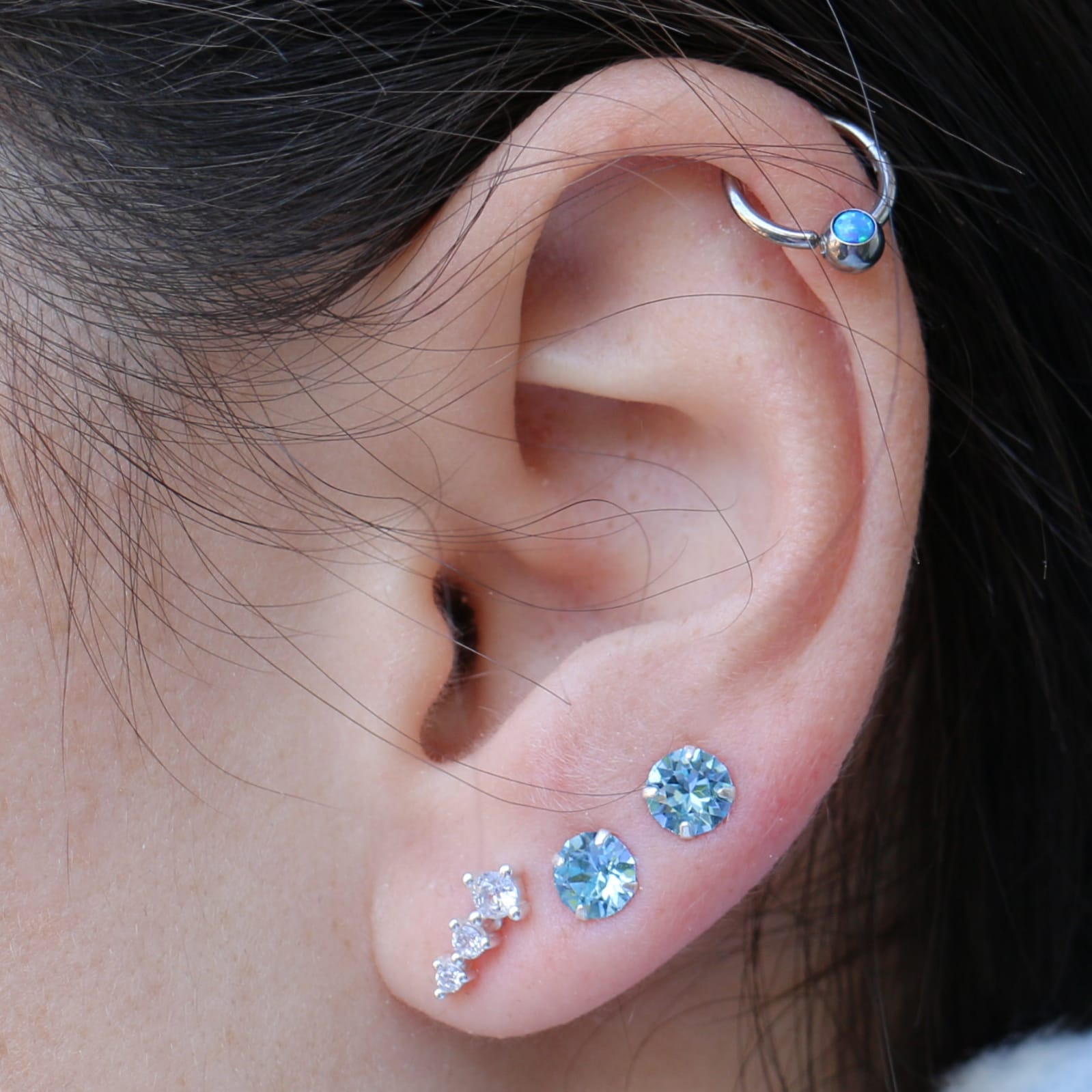 עגילי סטד מכסף שורת קריסטלים לבנים