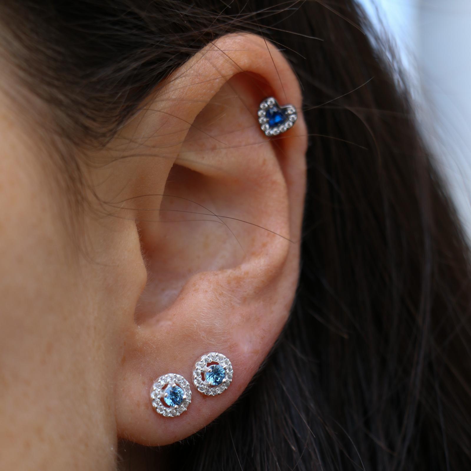 עגיל הליקס / טראגוס / קונץ' / פלאט מטיטניום – לב כחול עם קריסטלים לבנים בהברגה