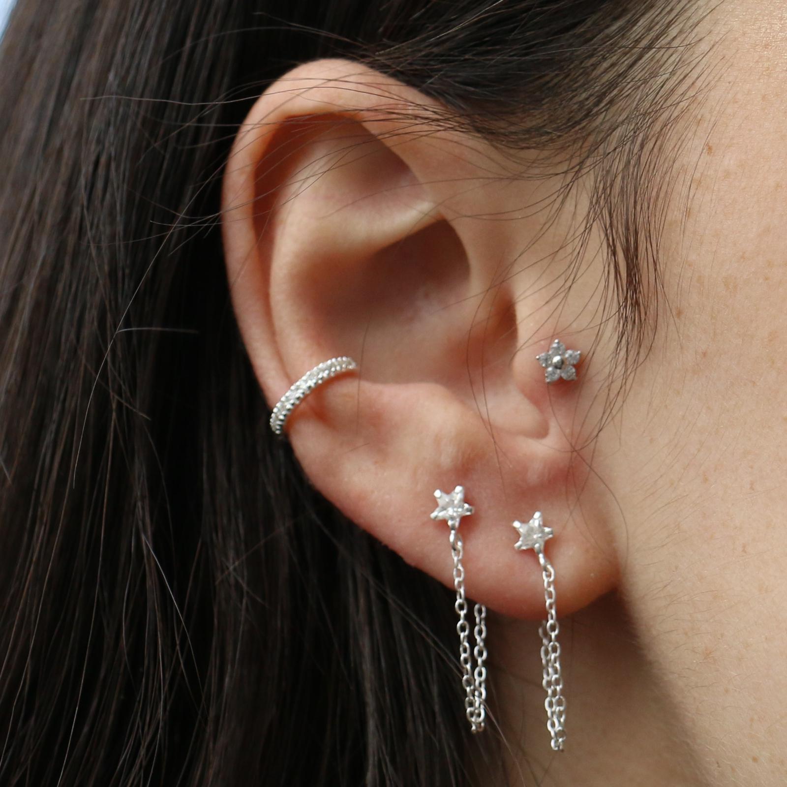 עגיל זהב לבן טראגוס – פרח עם קריסטלים לבנים