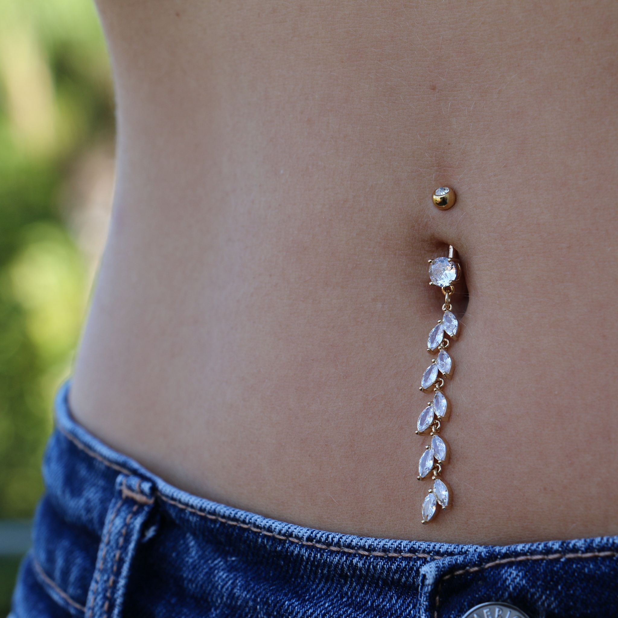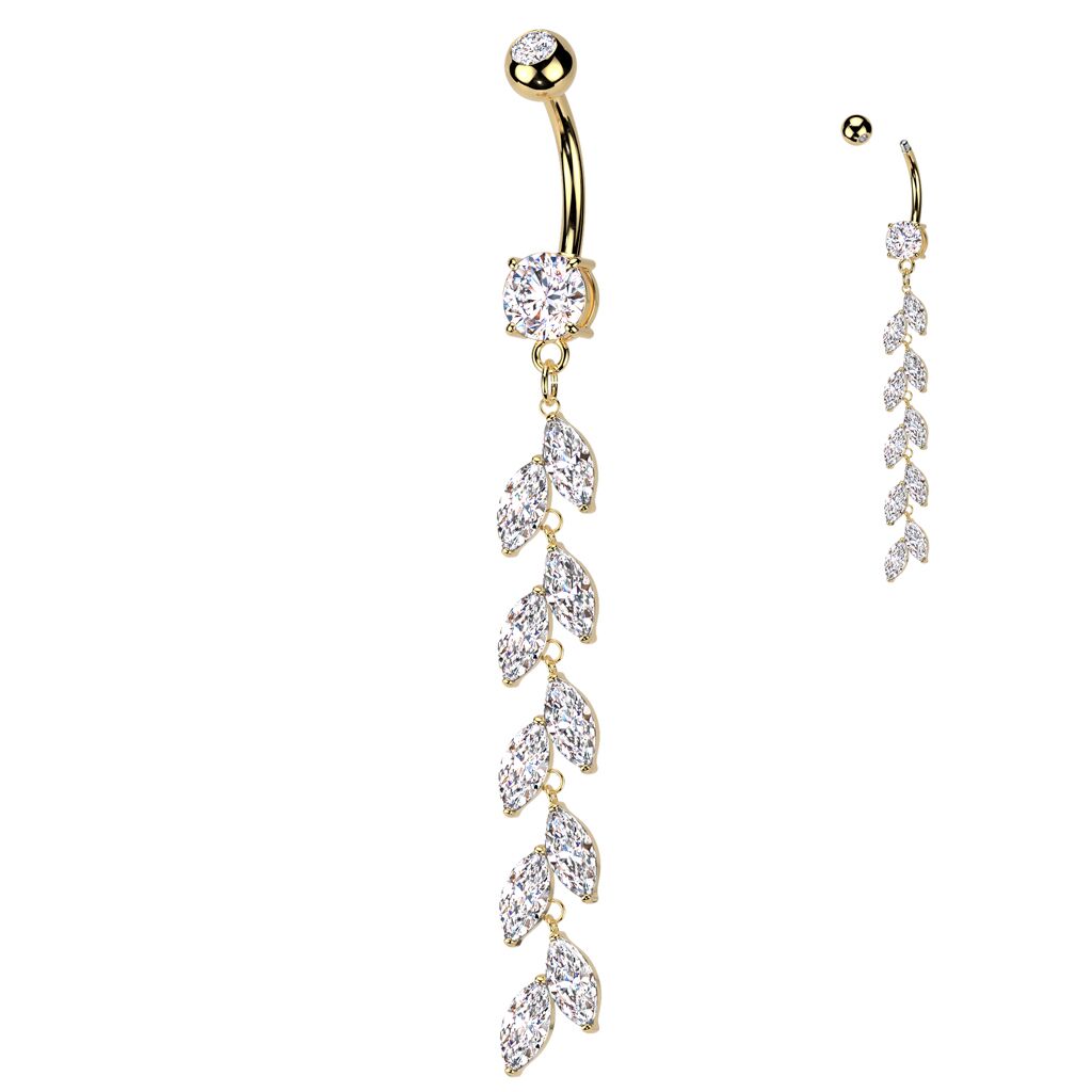 עגיל פירסינג בטבור וציפוי זהב – שרשרת של מרקיזים לבנים