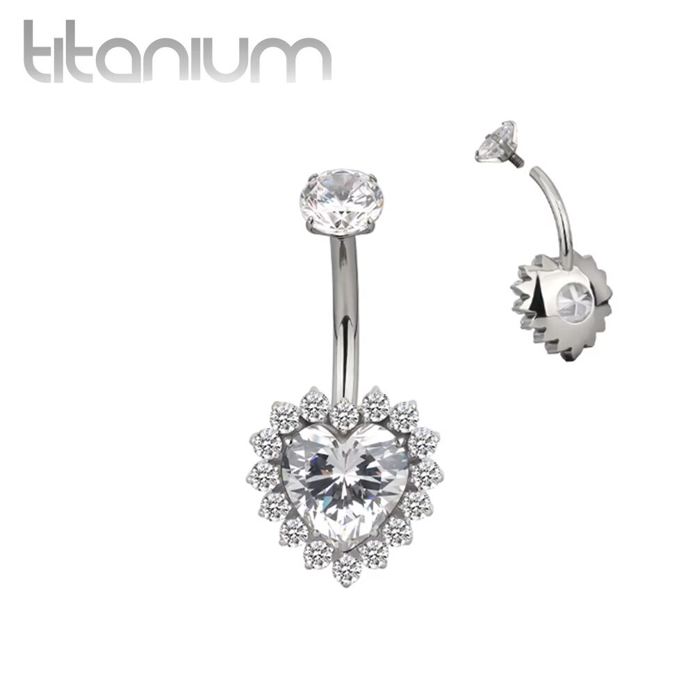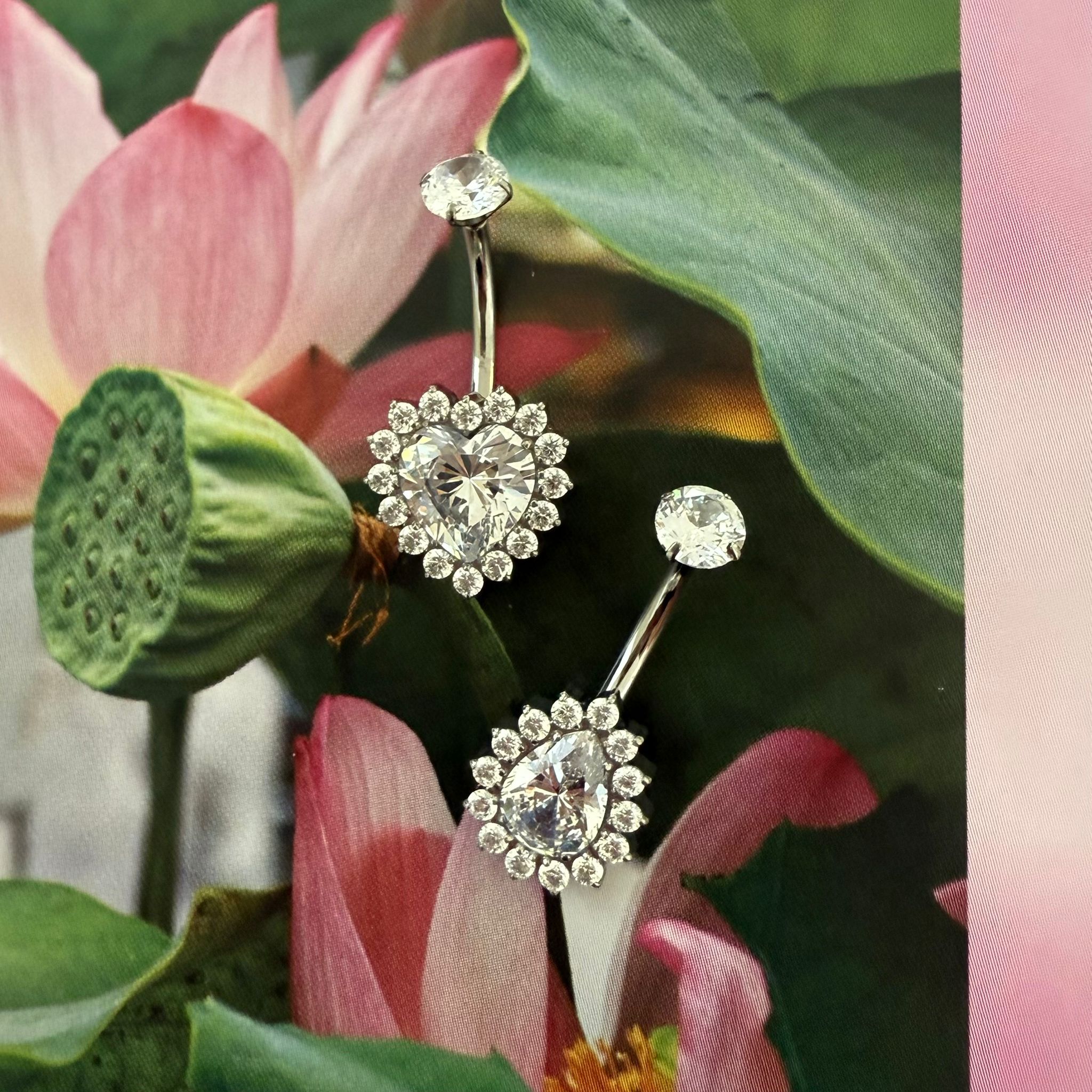 עגיל פירסינג בטבור מטיטניום – זירקוניה לב וקריסטלים לבנים