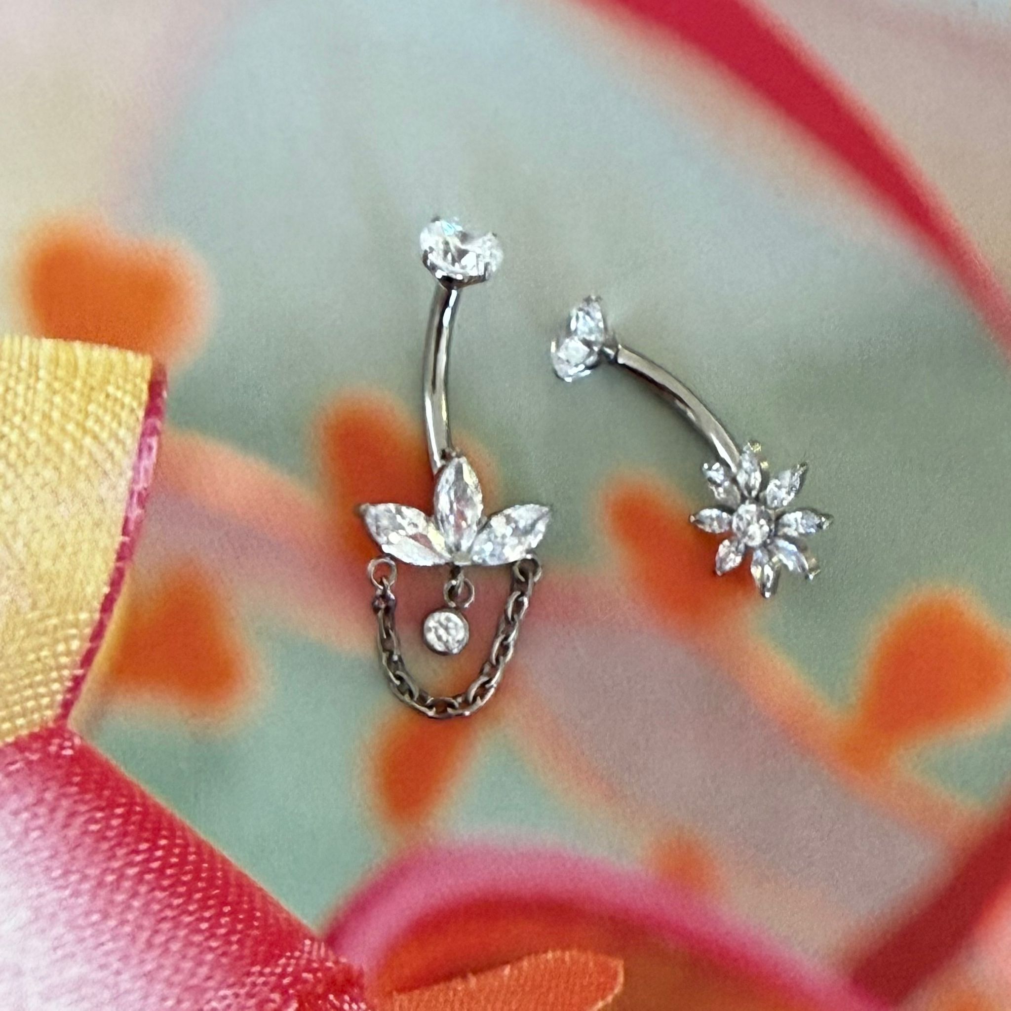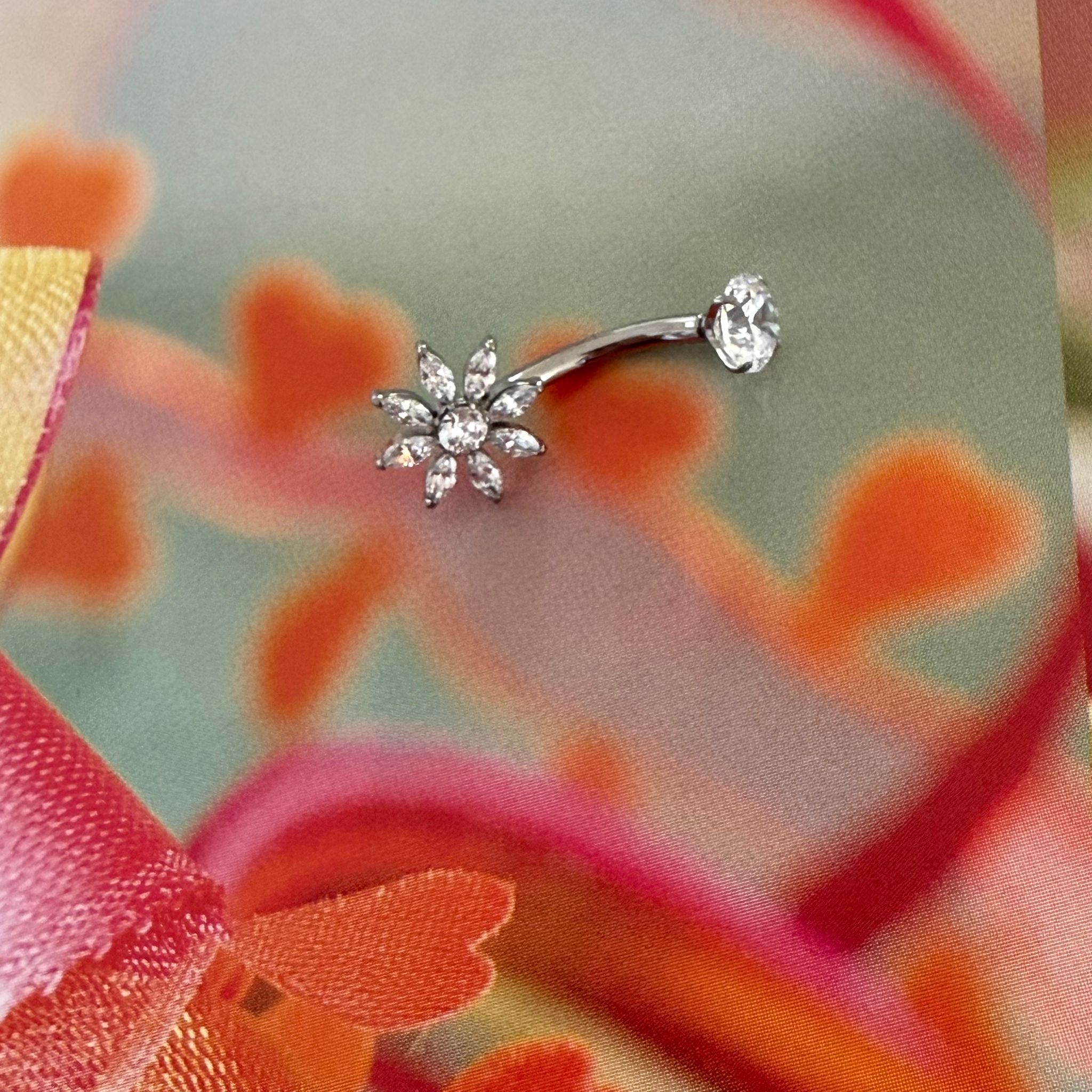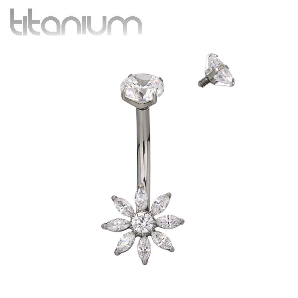 עגיל פירסינג בטבור מטיטניום – פרח מרגנית מרקיזים לבנים