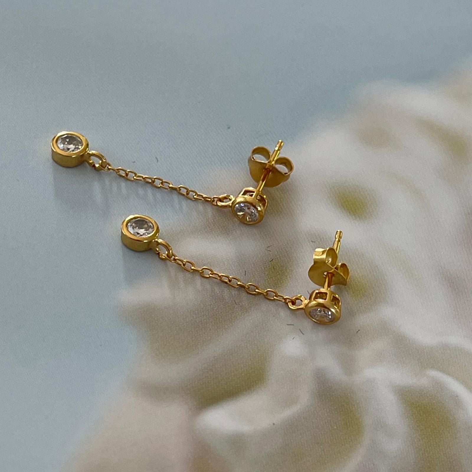 עגיל שרשרת מכסף 925 וציפוי זהב – עיגולים זירקוניה לבנים ושרשרת